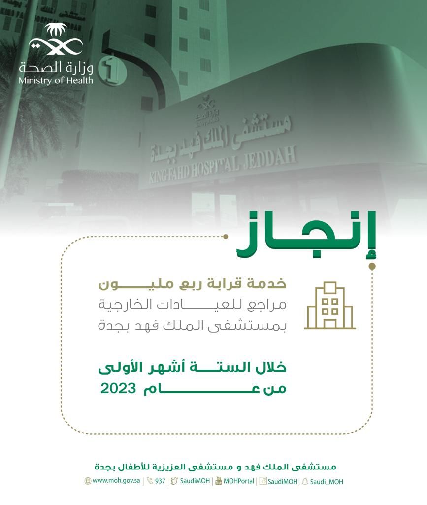قدم قسم العيادات الخارجية بمستشفى الملك فهد بجدة خدماته ل قرابة 250 ألف مستفيد خلال النصف الاول من عام 2023  .