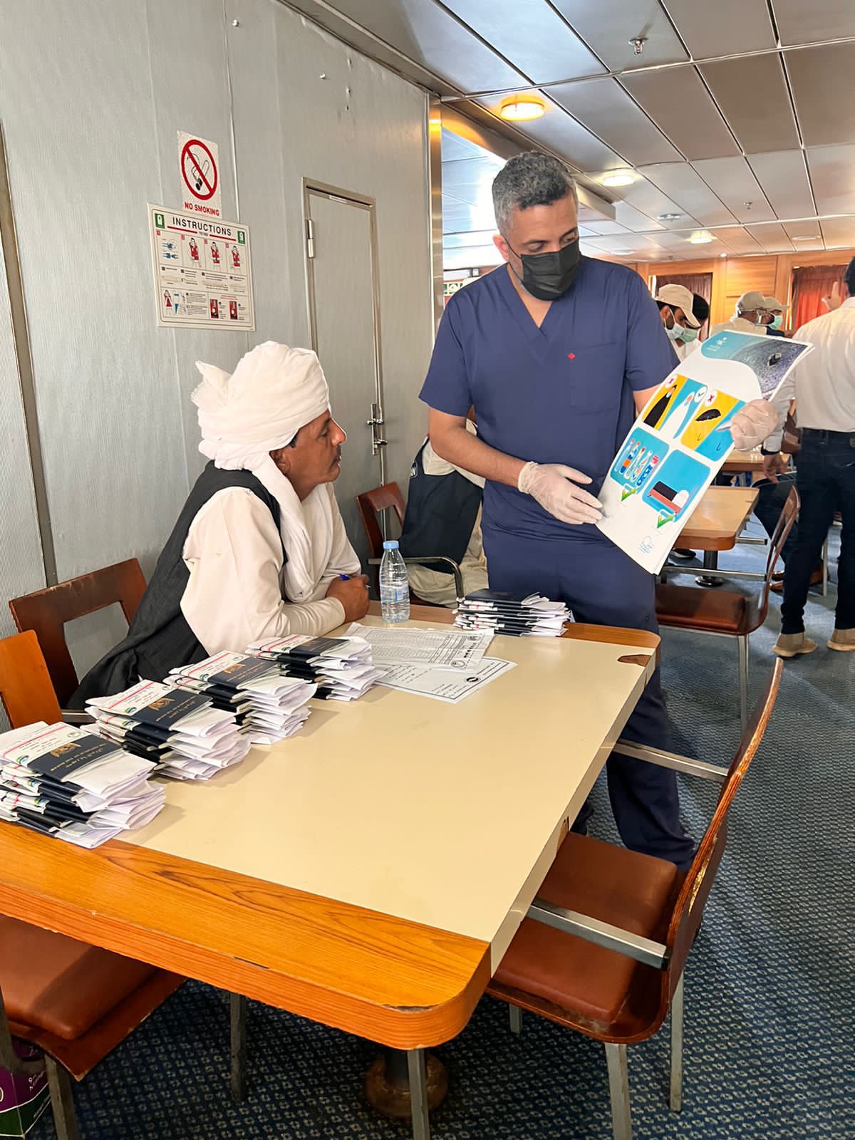 وأوضحت الوزارة أن فريق عمل متكامل تابع لمراكز المراقبة الصحية بميناء جدة الإسلامي بقيادة مدير مركز المراقبة الصحية باشر استقبال الحجاج ، للاطمئنان و الإشراف على تنفيذ الخطط الصحية و الوقائية لتوفير الرعاية الصحية لأول فوج حجاج يصل عبر البحر ، من أجل استيفاء كافة الجوانب الطبية و الوقائية و التوعوية ، و تطبيق كافة الاشتراطات الصحية لمنع وفادة الأمراض المعدية و الوبائية ، و منذ الوهلة الأولى لوصول الحجاج قام المختصين بمركز التفتيش الصحي للسفن بمعاينة جميع القادمين للتأكد من سلامتهم الصحية ، حيث شملت مراجعة كروت التطعيم مع إعطاء الحجاج العلاج الوقائي لمنع حمل الميكروب المسبب لمرض الحمى المخية الشوكية ، كما قامت اللجان التوعوية بإدارة التواصل و العلاقات و التوعية بصحة جدة بالتنسيق مع قسم التوعية بـمركز المراقبة الصحية باستكمال الجانب التوعوي للحجاج من خلال مواد مرئية عبر الشاشات و معدة مُسبقاً في صالات إستقبال الركاب بالميناء ، إضافة إلى المواد المطبوعة عبر البوسترات و تٌقدم من خلالها التوعية للحجاج وجهاً لوجه من خلال استخدام أداة إرشادية مصورة ( بوستر تعريفي ) و لوحات بمقاسات مختلفة موضح فيها طرق الوقاية و الإرشادات التي يجب إتباعها الحاج لحج آمن و صحي ، كما تم توزيع المطويات و البروشورات على ضيوف الرحمن و التي تشمل نصائح و إرشادات توعوية و تثقيفية مختلفة .