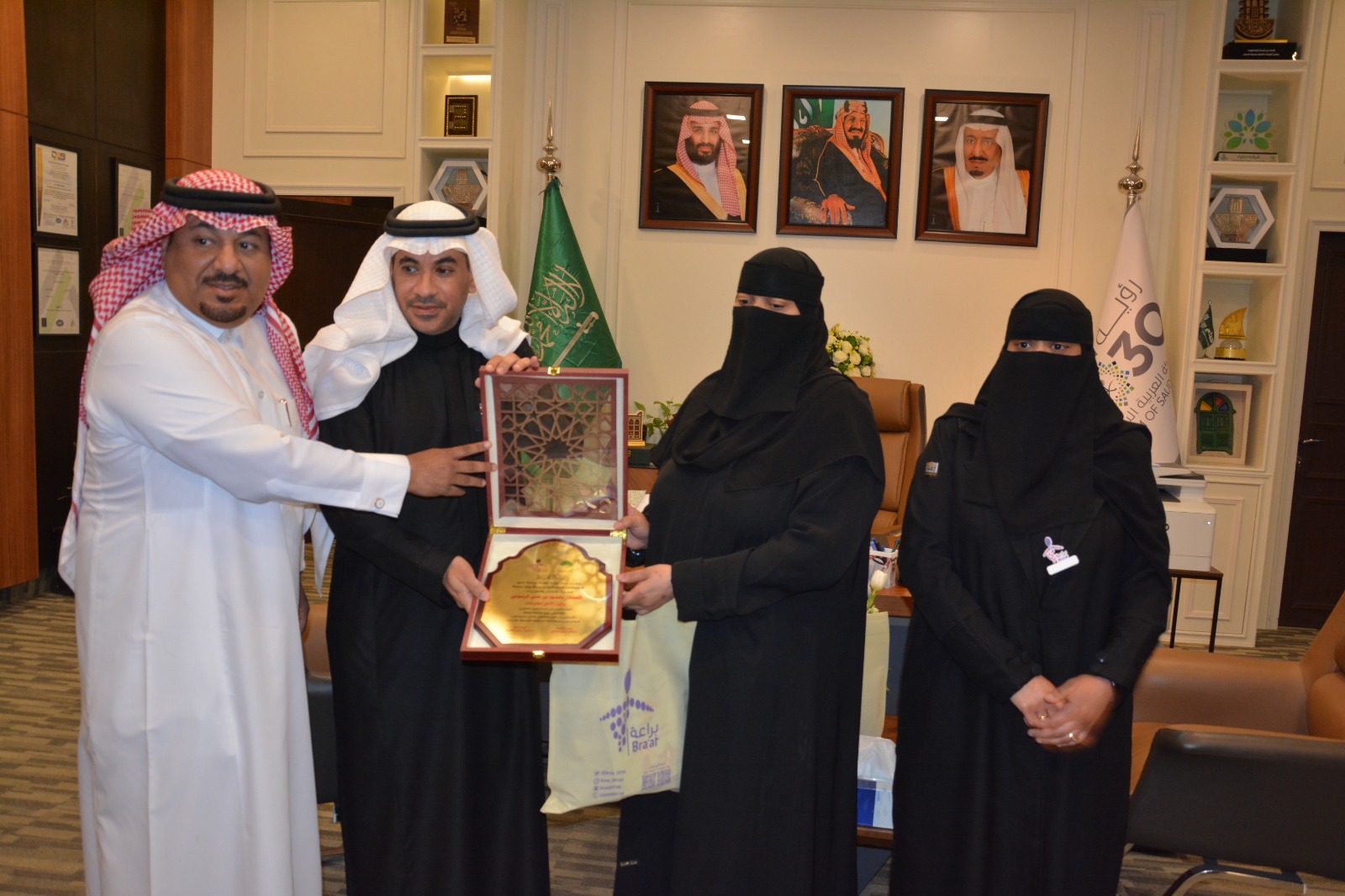 وفي نهاية اللقاء قامت إدارة المركز ومجموعة نوايا حسنة العربية بتقديم دروع تذكاري لكل من وكيل الأمين بالمنطقة الشرقية الأستاذ محمود الرتوعي، إضافة الى الأستاذ عبدالمنعم الذرمان مدير مكتب الأمين بالأمانة، والأستاذ محمد التمار مدير إدارة الجمعيات والمؤسسات الاهلية بالأمانة عرفاً بما قدماه من جهود ساهمت في دعم المركز اجتماعياً وتعليمياً.