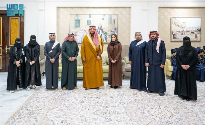 استقبلَ صاحبُ السموِّ الملكي الأمير فيصل بن خالد بن سلطان بن عبدالعزيز، أميرُ منطقة الحدود الشمالية، في مكتبه اليوم، عددًا من الأطفال الإعلاميين الذين أتمُّوا برنامج "الإعلامي الصغي"، الذي نفَّذَتْه جمعية إعلاميي الحدود الشمالية، بحضور رئيس الجمعية ثامر القمقوم، وعددٍ من الإعلاميين ضيوف البرنامج والقائمين عليه.