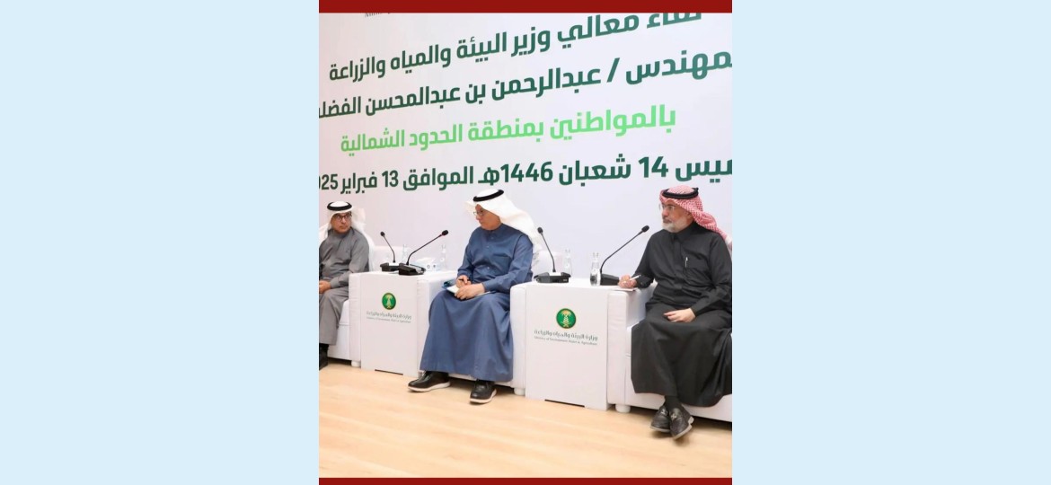 التقى معالي وزير البيئة والمياه والزراعة المهندس عبدالرحمن بن عبدالمحسن الفضلي، بعددٍ من المواطنين والمزارعين في منطقة الحدود الشمالية، للاستماع إلى احتياجاتهم، وتطلعاتهم، واستفساراتهم المرتبطة بالمشاريع البيئية والمائية والزراعية، التي تُشرف عليها الوزارة في المنطقة.