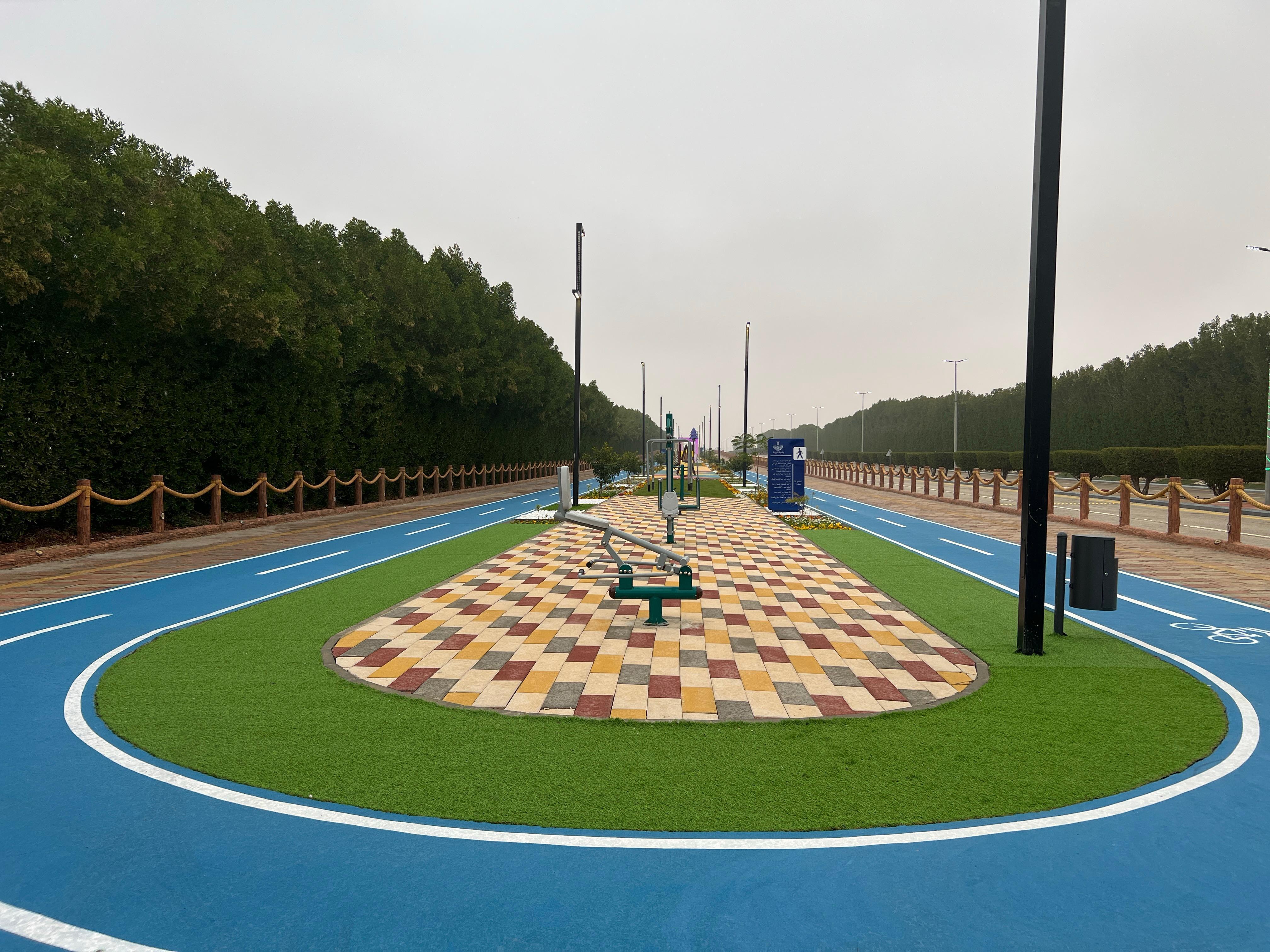 كما شملت أعمال التطوير تنفيذ ممرات مشاة، ومساحات خضراء، وأرضيات مطاطية في منطقة ألعاب الأطفال، وأعمدة إنارة ديكوريه تعزز من جمالية الحديقة.
