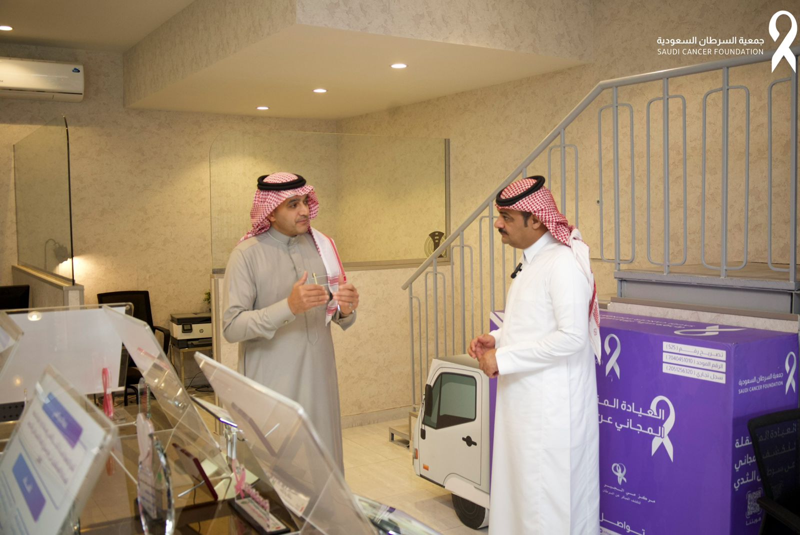 استقبل عضو مجلس الإدارة لجمعية السرطان السعودية الأستاذ بركة بن ظافي الشمري والمدير التنفيذي الأستاذ عصام بن أحمد الجعفري خبير الموارد البشرية والناشط الاجتماعي الأستاذ رائد بن عبدالمحسن الرضا بمقر الجمعية بمحافظة الخبر للتعريف بخدمات الجمعية وبرامجها التوعوية والتثقيفية حيث استعرض المدير التنفيذي عرض مرئي لانجازاتها في خدمة مرضى السرطان والخطط الإستراتيجية لعام 2025م لبحث سبل التعاون المشتركة لخدمة مرضى السرطان بالمنطقة الشرقية.