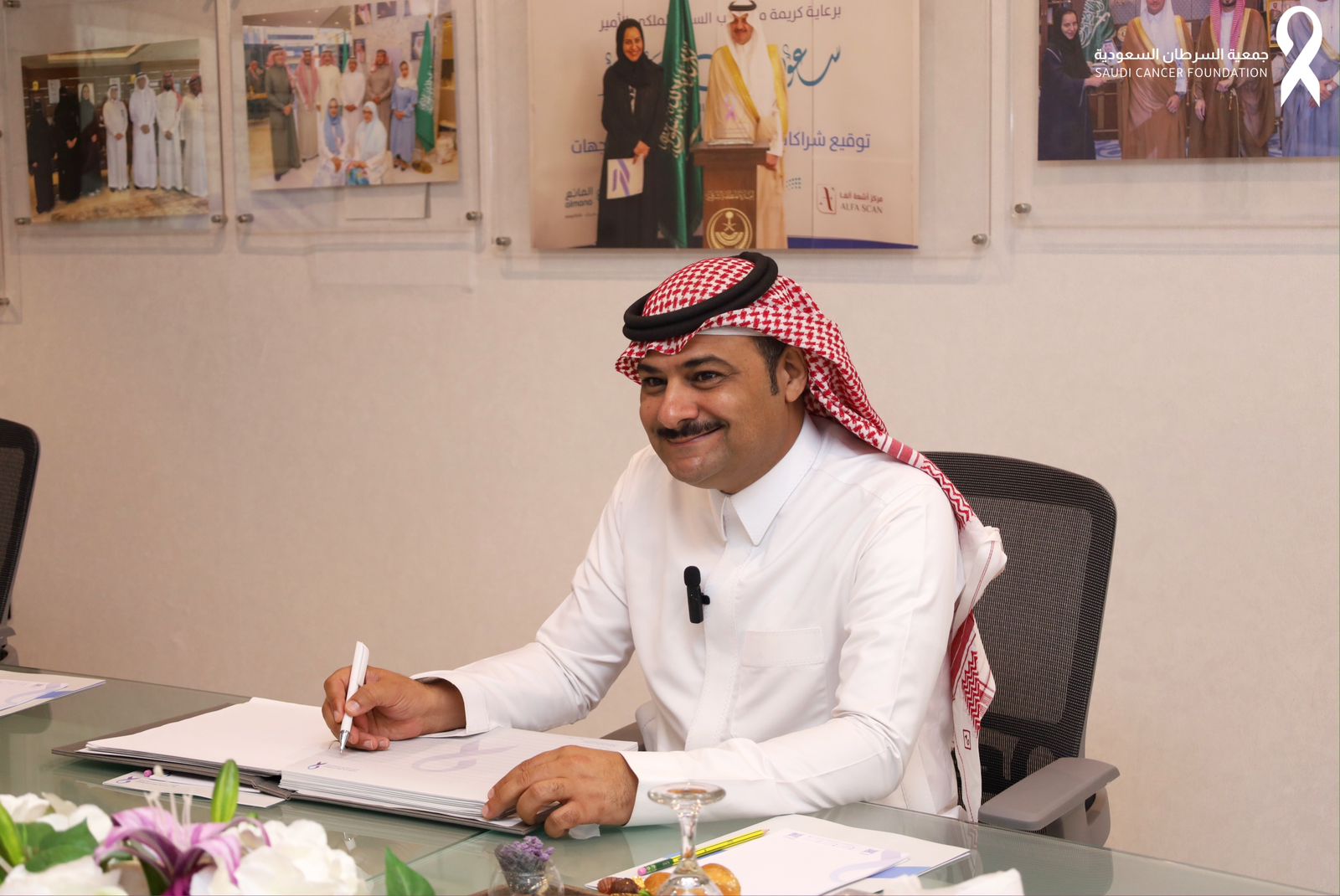 واختتمت الزيارة بتدوين عبارة تذكارية من الأستاذ رائد بن عبدالمحسن الرضا وأخذ صور تذكارية مع منسوبي جمعية السرطان السعودية.