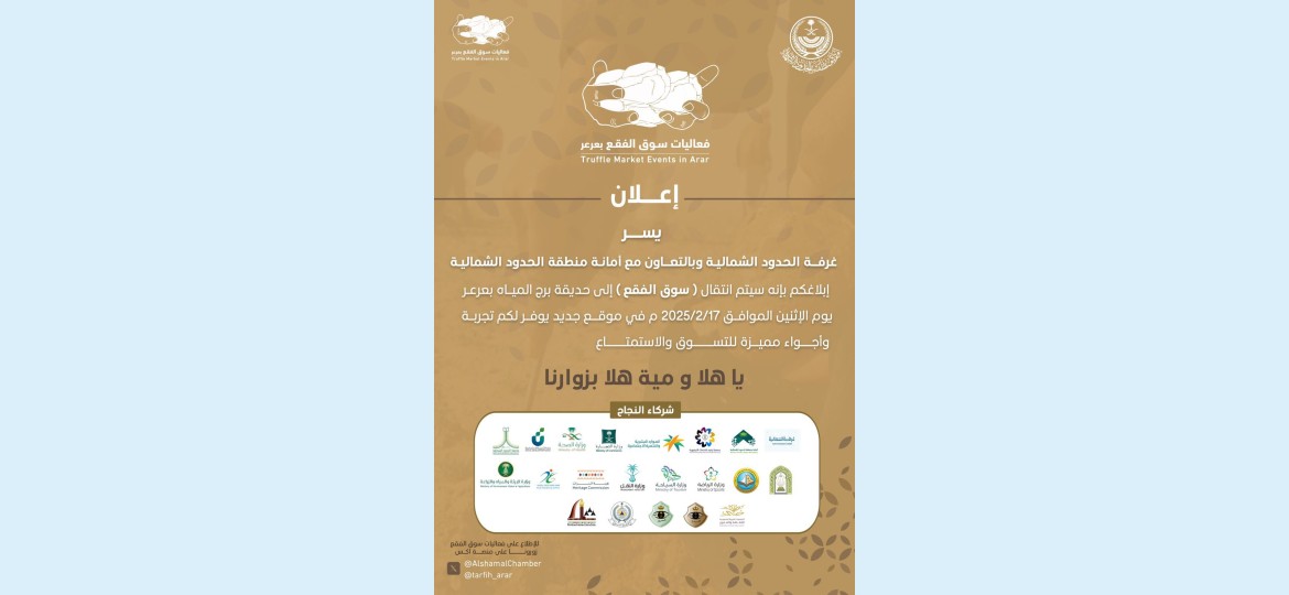 ودعت غرفة الحدود الشمالية جميع الزوار للاستمتاع بالأجواء الجديدة للسوق، مؤكدة حرصها على تقديم تجربة مميزة تجمع بين التراث والتسوق والترفيه.
