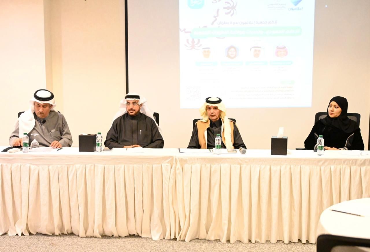 شارك في الندوة كل من  اللواء م عبدالله الحارثي، والمستشار الإعلامي،  والثقافي عبدالله الكناني، والمتخصصة في الإعلام العقاري، الأستاذة نوف بنت سعيدان، وتطرق الحضور إلى مسيرة الإعلام السعودي والتحديات التي تواجه، وأبرزها سرعة التحولات الرقمية، والتغيرات في أنماط استهلاك المحتوى الإعلامي، إضافةً إلى أهمية تدريب الكوادر الإعلامية على أحدث التقنيات لضمان تقديم محتوى مهني يعزز الهوية الوطنية.