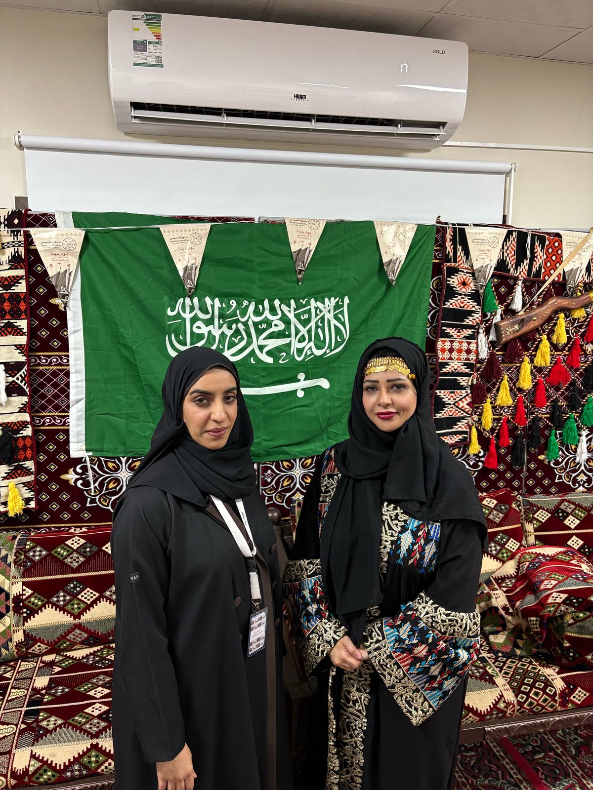 وقد تم تخصص مجلس عربي لاستقبال الضيوف صمم بعدد من المقتنيات التراثية النادرة التي تحكي تاريخ الآباء والأجداد حيث تناول الضيوف القهوة العربية والتمر والشكولاته والمرطبات التي اعدت للمناسبة على أنغام العرضة السعودية وعدد من الأولون الشعبية الفلكلورية حيث عبر الحضور عن سعادتهم بهذه الاحتفالية والذكرى العزيزة للوطن الغالي بيوم التأسيس .