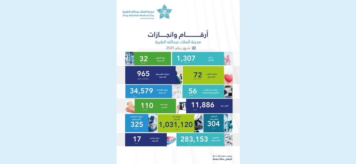 الجدير بالذكر، أن مدينة الملك عبدالله الطبية تؤكد دائماً على التزامها بمواصلة تطوير خدماتها الصحية وتعزيز الأداء في مختلف المجالات الطبية، بما يحقق تطلعات المرضى ويرتقي بمستوى الرعاية الصحية المقدمة، انسجامًا مع رؤية المملكة 2030 في تطوير القطاع الصحي.