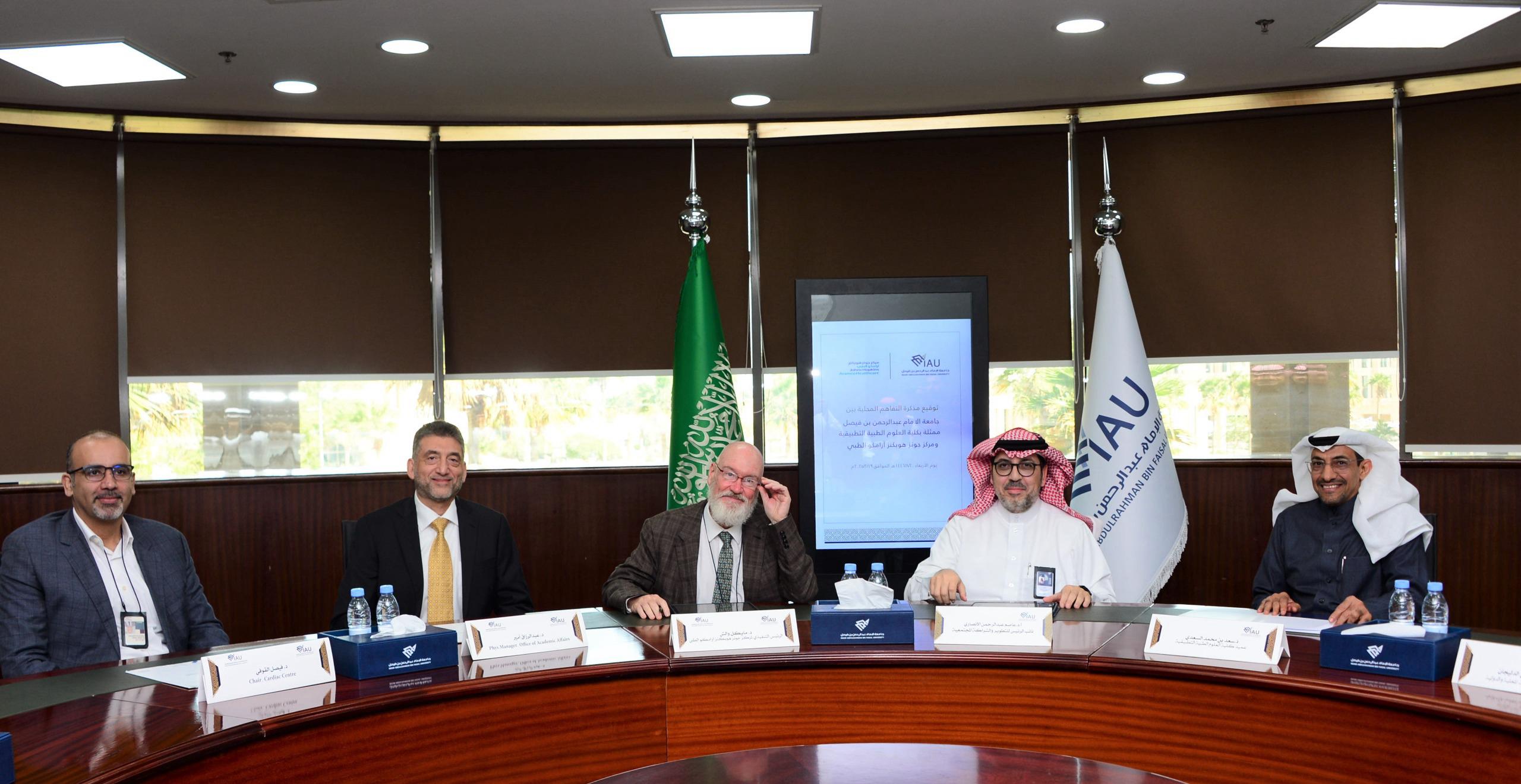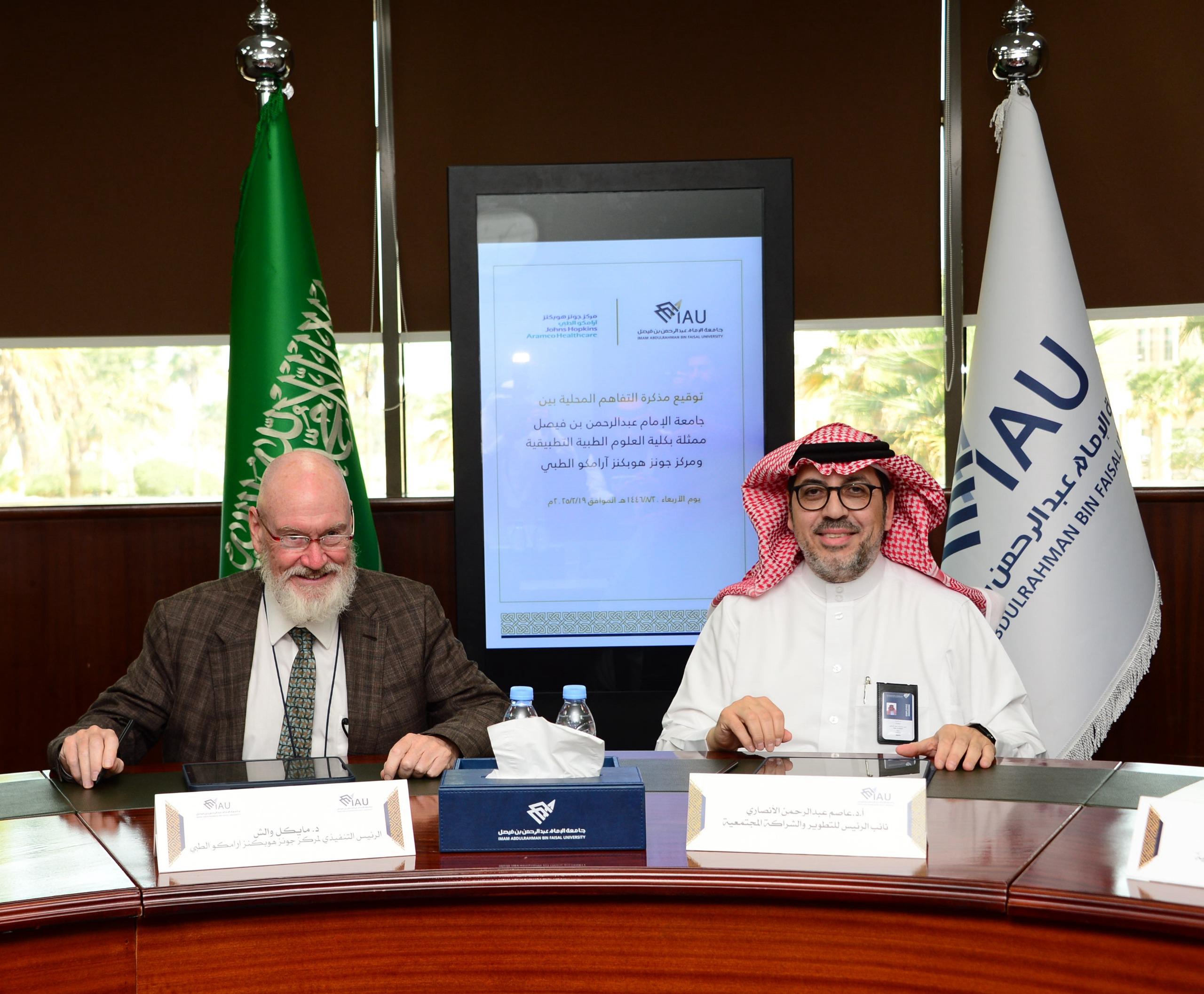 أبرمت  جامعة الإمام عبد الرحمن بن فيصل  ومركز جونز هوبكنز أرامكو الطبي مذكرة تفاهم في عددا المجالات حيث وقع المذكرة من الجامعة القائم بأعمال نائب الرئيس للتطوير والشراكة المجتمعية الأستاذ الدكتور عاصم بن عبدالرحمن الأنصاري ومن المركز   الدكتور مايكل والش الرئيس التنفيذي لمركز جونز هوبكنز ارامكو الطبي  ، بحضور عميد كلية العلوم الطبية التطبيقية د .سعد السعدي ، و د. لمياء الصيخان رئيسة قسم تقنية القلب ووكيلة الكلية للبحث العلمي والابتكار ، و د. سارة بنت علي الدليجان مديرة وحدة الشراكات المحلية والدولية ، و د. طفيل اليوسف مدير مركز الاتصال والاعلام.