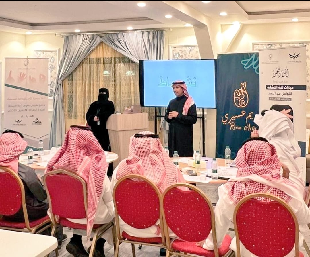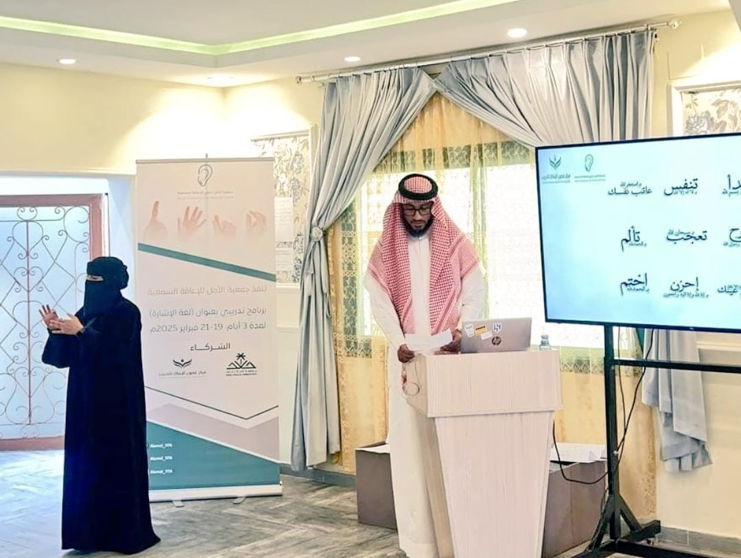 وأكد الرئيس التنفيذي للجمعية أ.نايف الحكمي أن الدورة استهدفت 20 موظفاً وموظفة في القطاع الحكومي والخاص وتستمر لمدة 3 أيام، وذلك لتنمية مهاراتهم في أساسيات لغة الإشارة بما يسهم في تعزيز التواصل مع الصم وضعاف السمع.