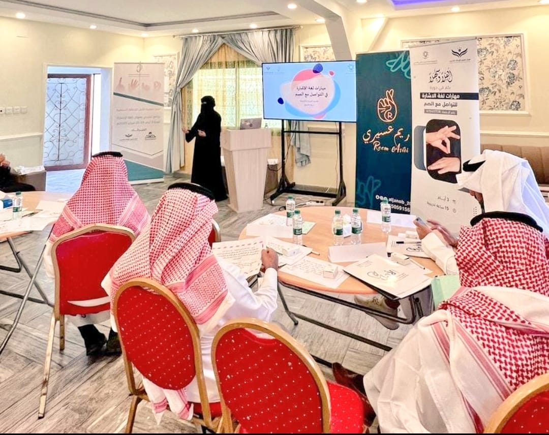 نظّمت جمعية الأمل للإعاقة السمعية بمنطقة عسير دورة في مهارات لغة الإشارة للتواصل مع الصم بالشراكة مع جامعة الملك خالد ومركز غصون الابتكار للتدريب.