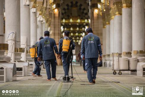 واردف الرئيس العام قائلا " ان الوكالة ركزت في خطتها على جوانب التعقيم والتطهير والسجاد والسقيا والتكييف، بالإضافة لتسهيل تنقل الحشود داخل المسجد النبوي وساحاته والصلاة في الروضة الشريفة والسلام على رسول الله صلى الله عليه وسلم وصاحبيه رضوان الله عليهما، كما راعت الجوانب العلمية والتوجيهية والإرشادية والتوعوية، واستخدام التقنية والاستفادة من قنوات التواصل الحديث في إيصال الرسالة الإعلامية للزائر قبل وصوله للمسجد النبوي للتسهيل على الزائرين والحرص على سلامتهم وراحتهم.