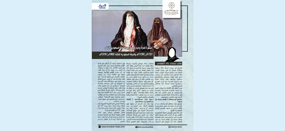ومن أعظم تلك الأمثلة ما نعيشه اليوم من نعمة العقيدة الصحيحة والوحدة المجتمعية، إذ يعود الفضل بعد الله إلى حنكة وذكاء المرأة العربية ولتقدير الرجال لهن والعمل بمشورتهن.