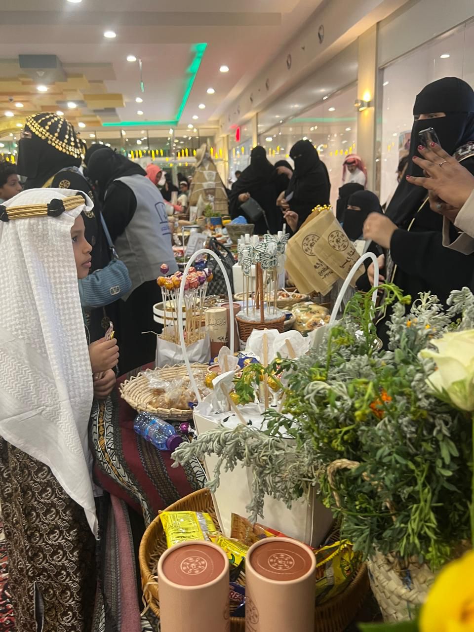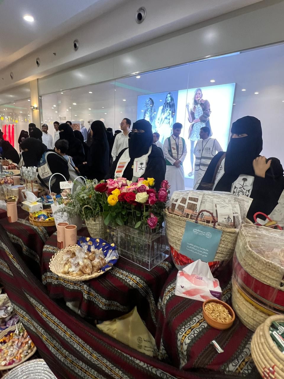 بعدها قام الضيوف بجولة على ركن الفريق الذي ضم الضيافة والهدايا والمعرض والخط العربي .