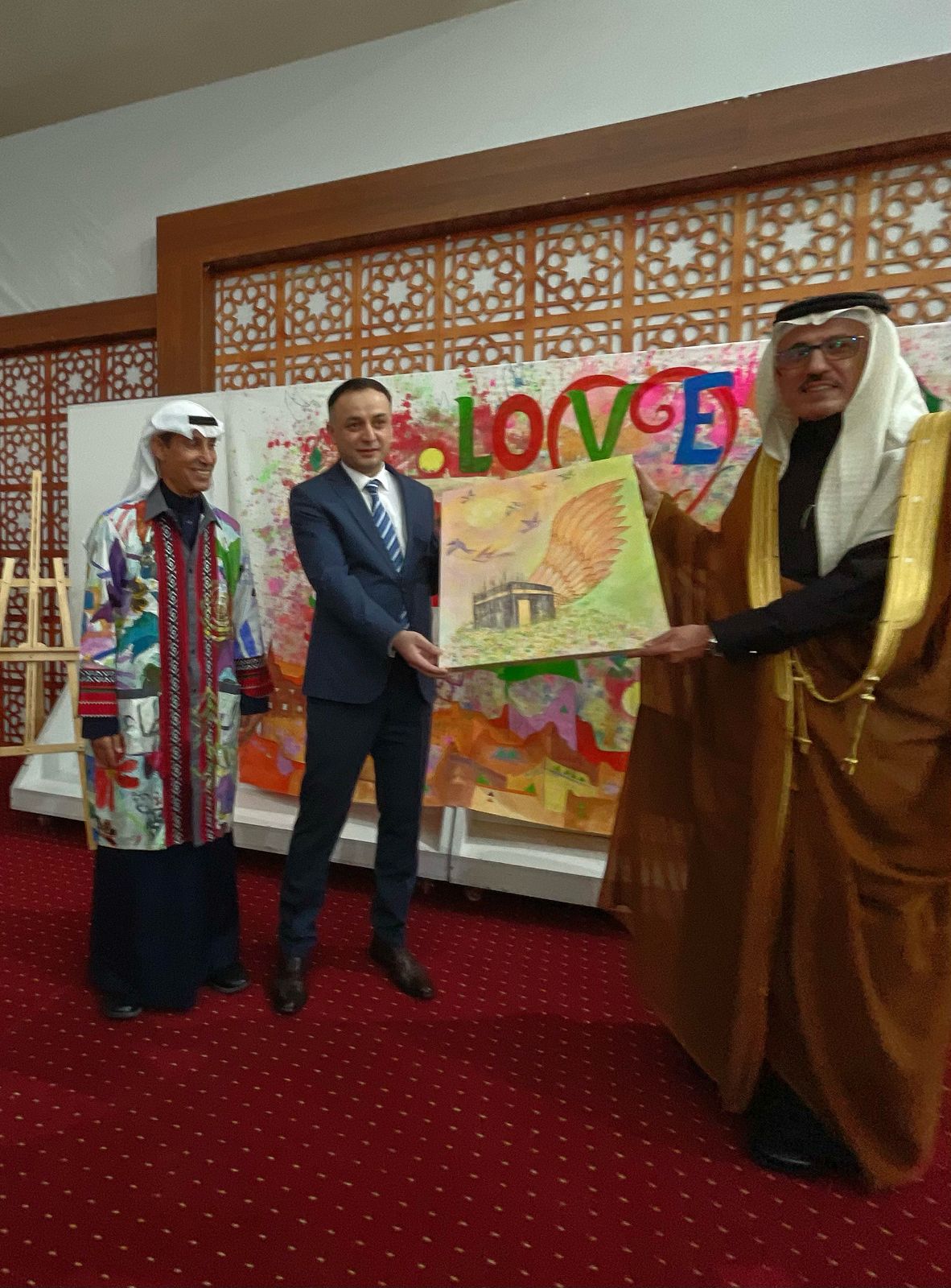 حيث كان الباقة الأولى لوحة مكة السلام مهداة إلى معالي النائب الاول لرئيس لجنة الاستثمار وأملاك الدولة السيد/ يوسف زادة فرروخ يوسف.