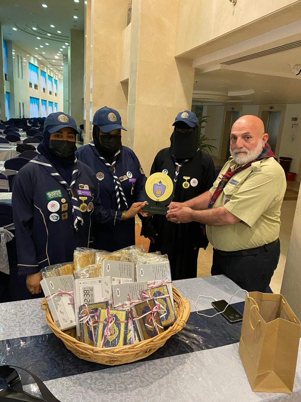 وتحدث القائد محمود الصلا عن أهمية الأخوة الكشفية و إهتمام ورعاية فرقة مرشدات مكة المكرمة بإستقبال المعتمرين شاكراً لهن حسن استقبالهم وتكريمهم.