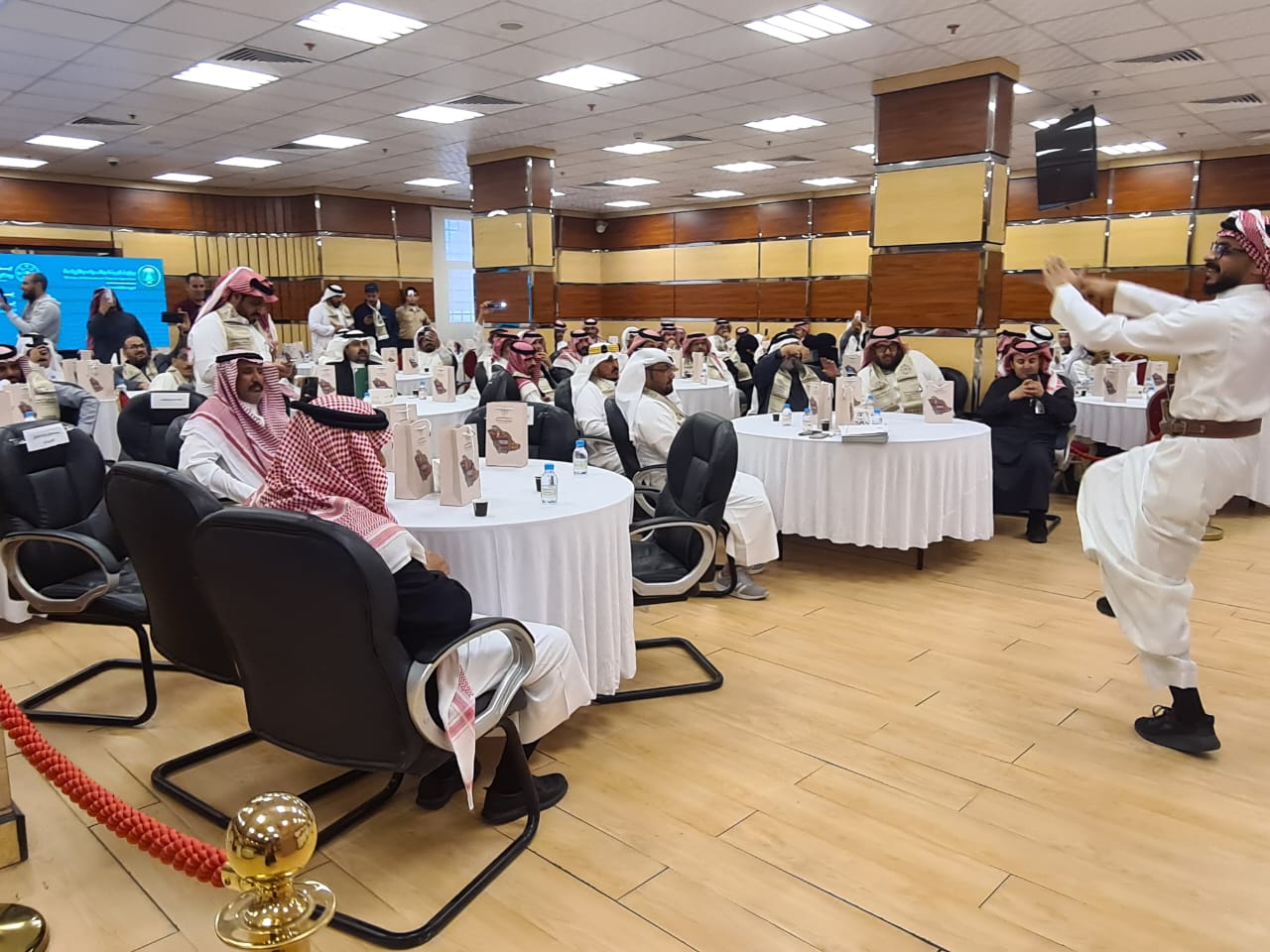 ثم مشاركة وطنية ليوم التأسيس لفرقة عسير استمتع بها الموظفين واستمعوا للقصائد الوطنية الملحنة ة.