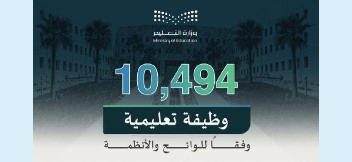 أعلنت  وزارة التعليم  فتح التقديم على (10,494) وظيفة تعليمية بنظام التعاقد المكاني في جميع الإدارات العامة للتعليم، للعام الدراسي 1447هـ، من خلال المنصة الوطنية الموحدة للتوظيف "جدارات"، وذلك لجميع الخريجين ووفق تخصصات محددة لسد الاحتياج.