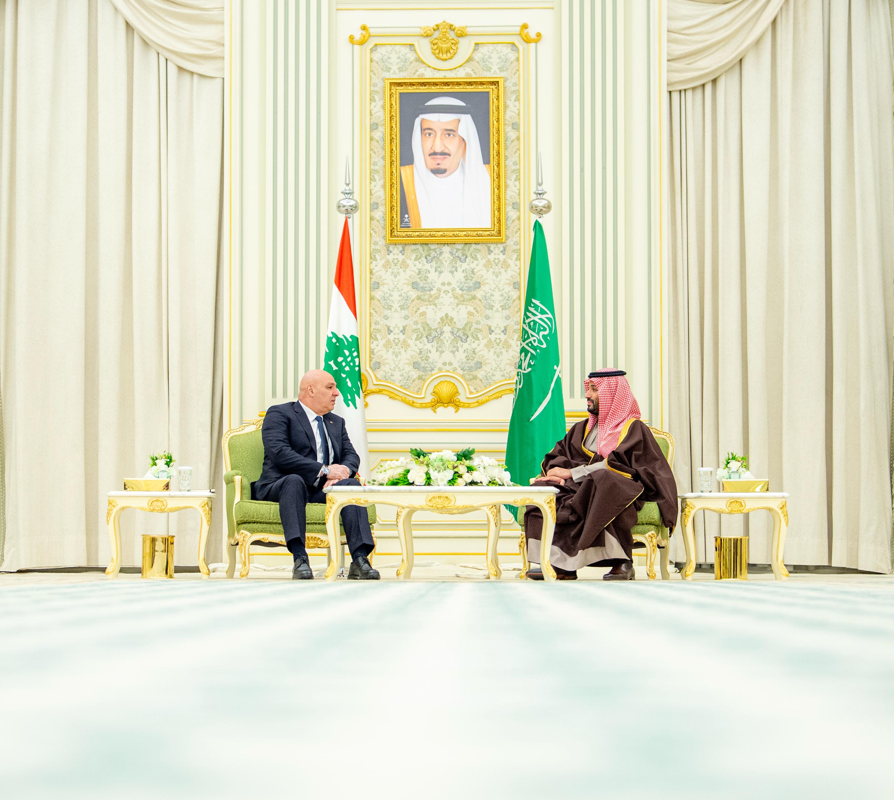 استقبل صاحب السمو الملكي الأمير محمد بن سلمان بن عبدالعزيز آل سعود، ولي العهد رئيس مجلس الوزراء، في الديوان الملكي بقصر اليمامة في الرياض، أمس الاثنين، فخامة الرئيس جوزيف عون رئيس الجمهورية اللبنانية.