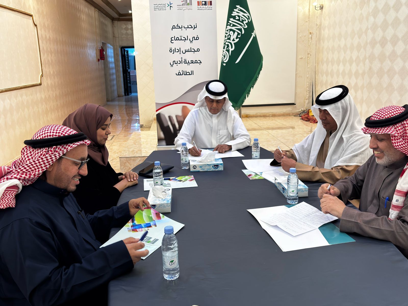 وكان مجلس إدارة جمعية أدبي الطائف قد عقد اجتماعه الأول مساء الاثنين بحضور جميع الأعضاء .
