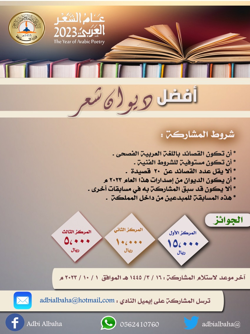 * أن يكون الديوان من إصدارات هذا العام 2023 م