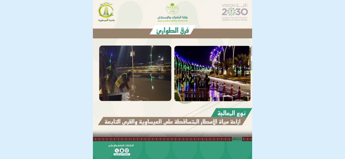 كما وجه سعادة رئيس البلدية بتعامل مع كل بلاغ باسر وقت وذلك باستقبال البلاغات الواردة من ٩٤٠ وغيرها من برامج التواصل.