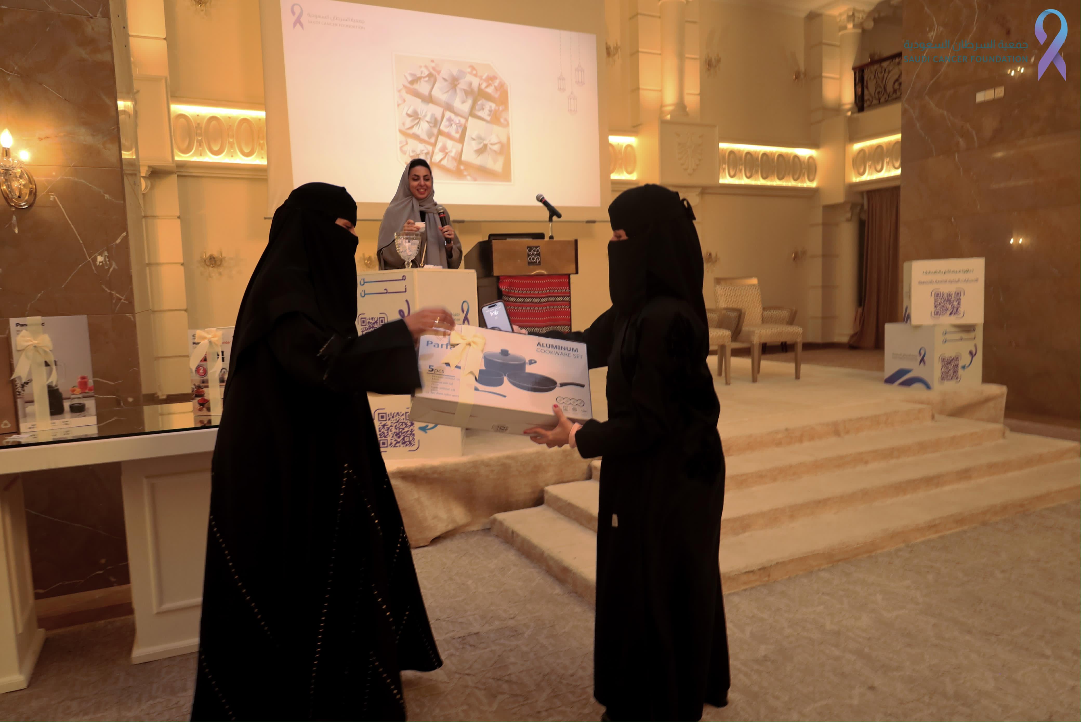 كما تفاعل الحضور مع فقرة السحوبات والجوائز المقدمة من قسم المستفيدين بجمعية السرطان السعودية