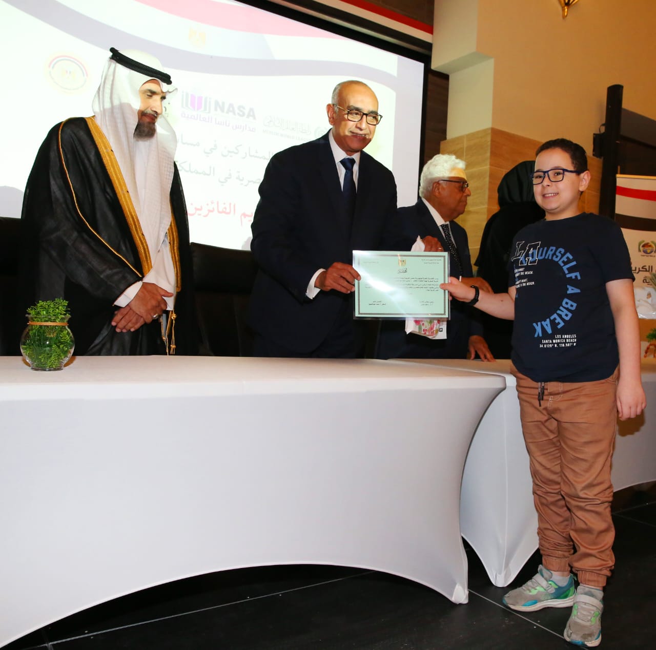وفي ختام الحفل كرم السفير أحمد عبدالمجيد والدكتور سعيد يحى رعاة الحفل والثلاثة الأوائل من الفائزين في كل فرع من فروع المسابقة وعددهم ١٥ فائزا بمبلغ مالي وشهادة تقدير ،كما تم تكريم باقي المتسابقين وعددهم ٢٨ متسابقا بشهادة تقدير وأيباد .