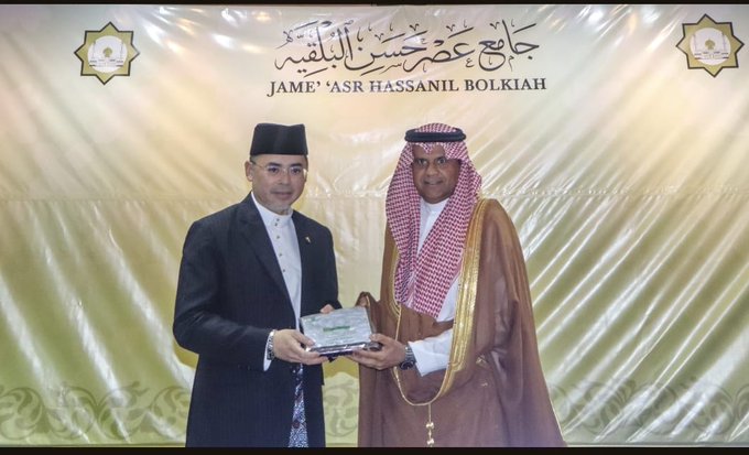 سلّم سفير خادم الحرمين الشريفين لدى بروناي دار السلام محمد بن عبدالله البريثن، هدية خادم الحرمين الشريفين من التمور لبروناي دار السلام، وذلك خلال الحفل الذي أقامته وزارة الشؤون الدينية بهذه المناسبة في العاصمة بندر سري بكاون.