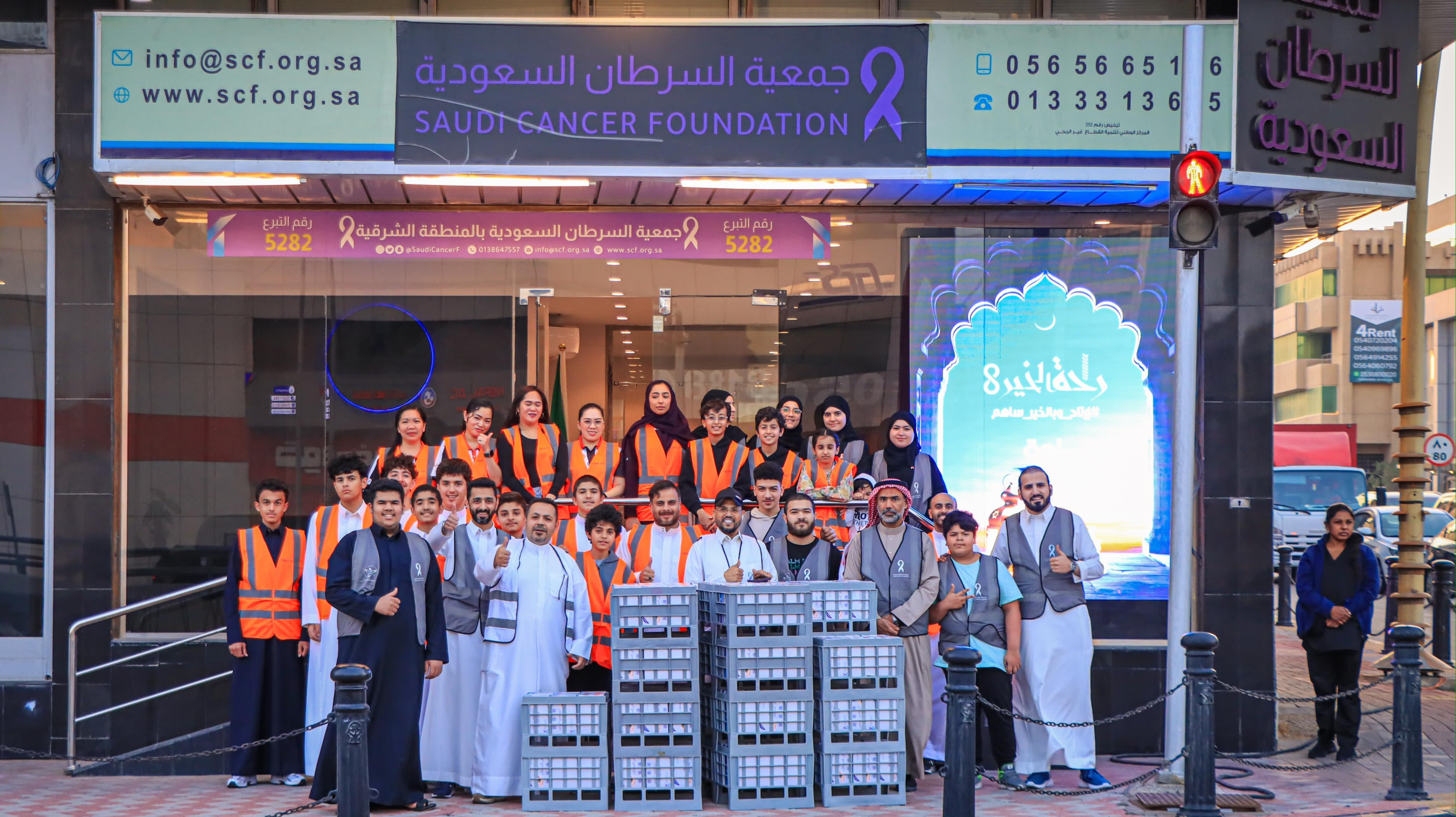تواصل جمعية السرطان السعودية مشروع تفطير الصائمين وحراس الأمن وعمال النظافة ومن لم يدركه الإفطار صدقة جارية عن مستفيدها مرضى السرطان .