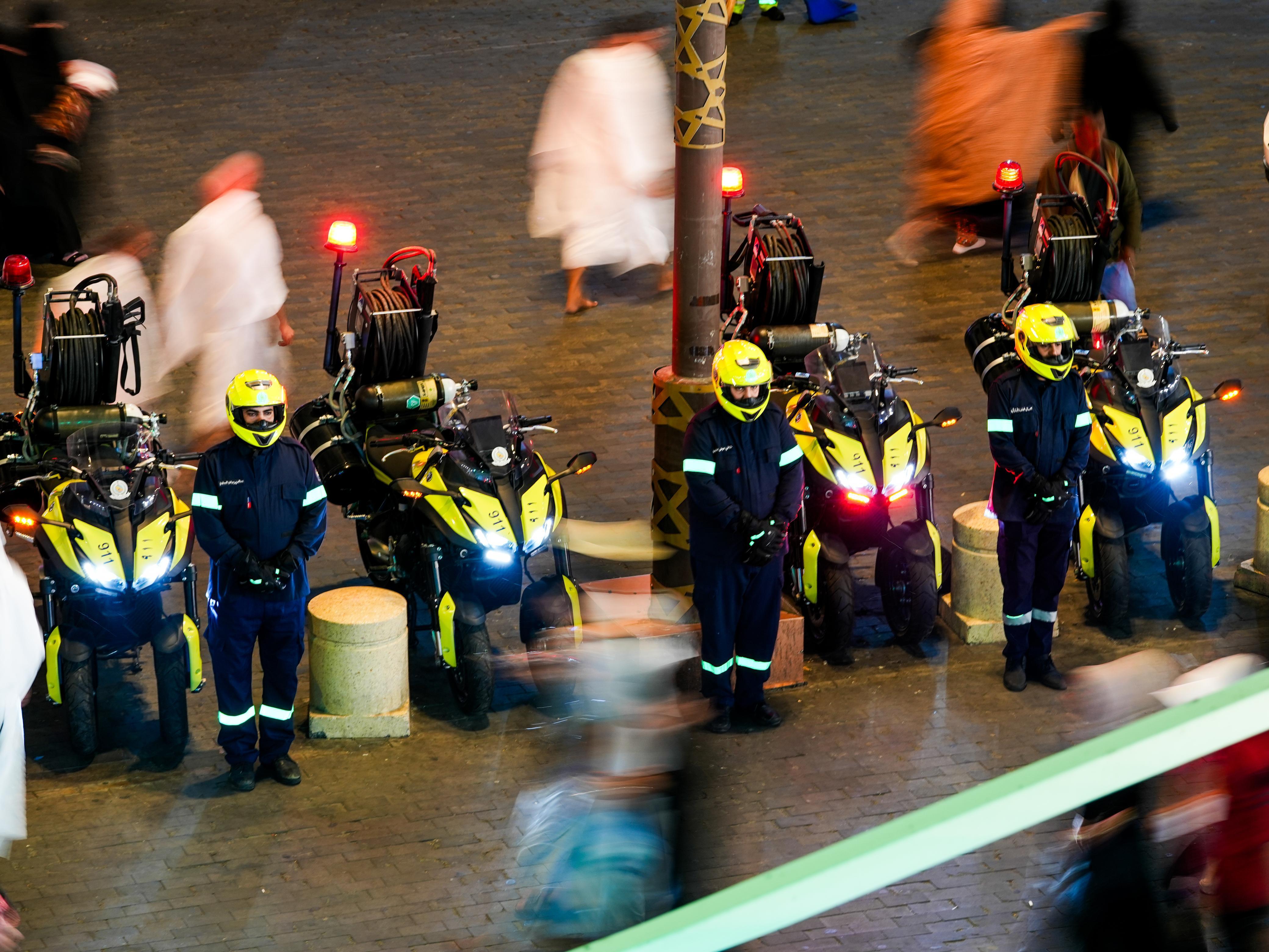 تواصل فرق التدخل السريع بالدفاع المدني مواجهة مهامها في حالات الطوارئ ، في المناطق المركزية بالحرمين الشريفين، من خلال نشر عدد كبير من الفرق المزودة بمعدات الإطفاء الأولية لتحقيق السلامه و خدمة الزوار والمعتمرين في الحرمين الشريفين.