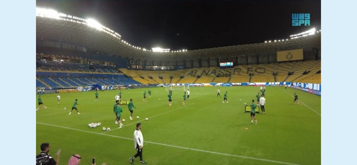 ميدانيًا، أجرى لاعبو الأخضر حصتهم التدريبية على ملعب المباراة تحت إشراف المدير الفني "إيرفي رينارد"، إذ بدأت بتمارين الإحماء ثم تمرين المربعات بعدها تمرين الاستحواذ قبل أن يجري تقسيمة من مجموعتين على نصف مساحة الملعب، واختتمت الحصة التدريبية بتمارين الإطالة، بينما واصل اللاعب "محمد كنو" برنامجه العلاجي برفقة الجهاز الطبي.