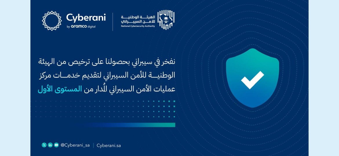 أعلنت شركة سيبراني، إحدى الشركات الرائدة في مجال حلول الأمن السيبراني ، عن حصولها على ترخيص تقديم خدمات مركز عمليات الأمن السيبراني المُدار من المستوى الأول، والذي يصدر عن الهيئة الوطنية للأمن السيبراني، وذلك بعد استيفائها كافة المتطلبات والمعايير التي أقرتها الهيئة في الإطار التنظيمي والسياسة الوطنية لمراكز العمليات السيبرانية.