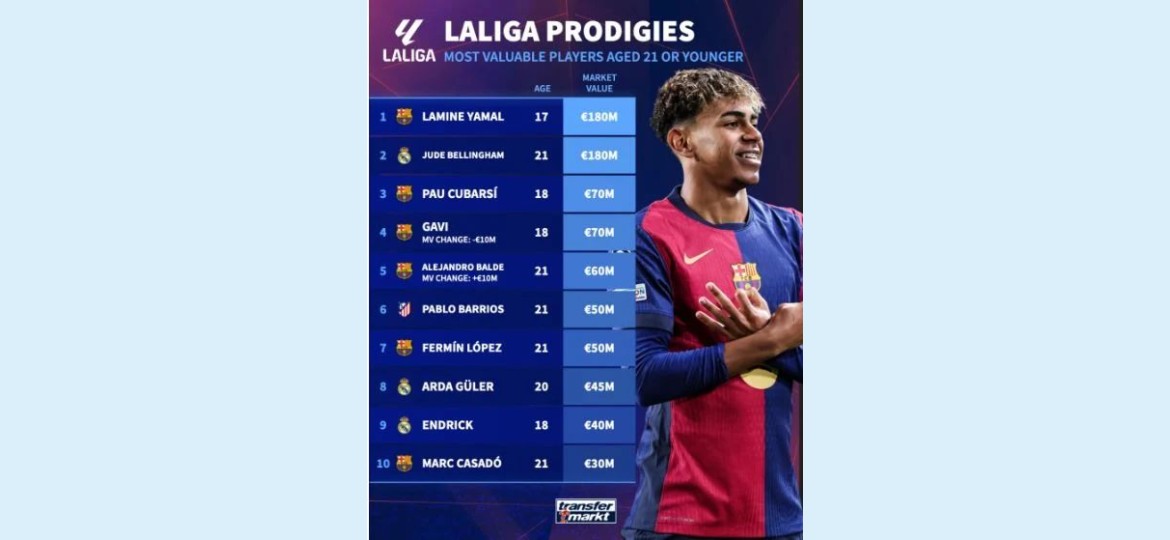 هذه القائمة تعكس المستويات الكبيرة التي يقدمها هؤلاء اللاعبون الشباب في الدوري الإسباني.