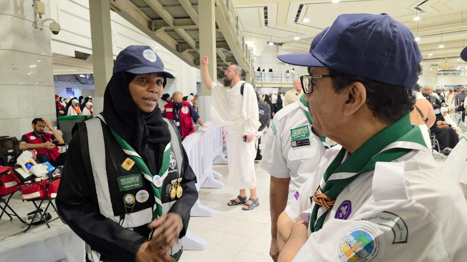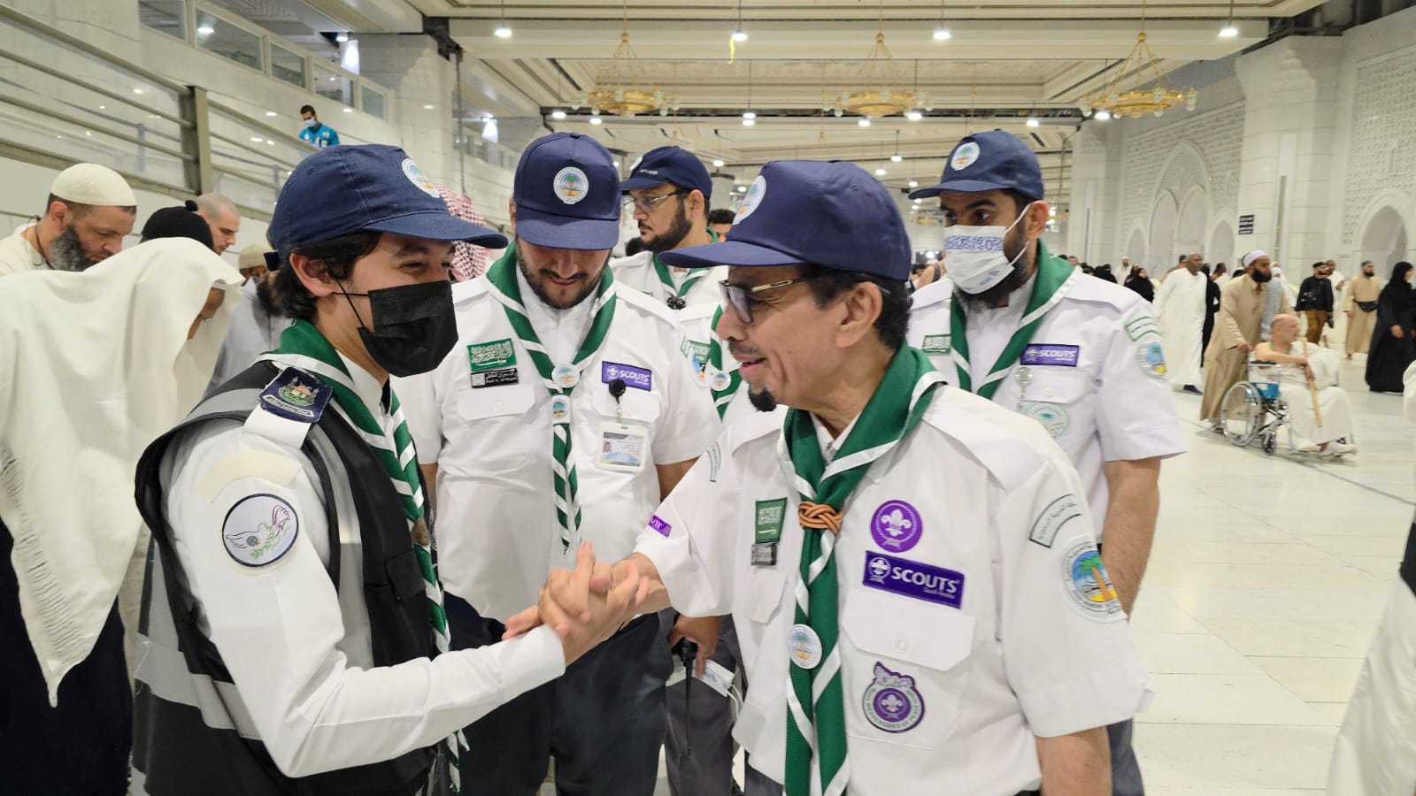 أطلع الأمين العام لجمعية الكشافة العربية السعودية، الدكتور عبدالرحمن بن إبراهيم المديرس، اليوم على أعمال معسكر خدمة المعتمرين الذي تُقيمه الجمعية منذُ مطلع شهر رمضان المبارك، ويستمر حتى ليلة عيد الفطر المبارك، وذلك خلال الزيارة التي قام بها على جميع الوحدات الكشفية والمسارات العاملة مع الجهات ذات العلاقة بخدمة المعتمرين والمصلين والصائمين.