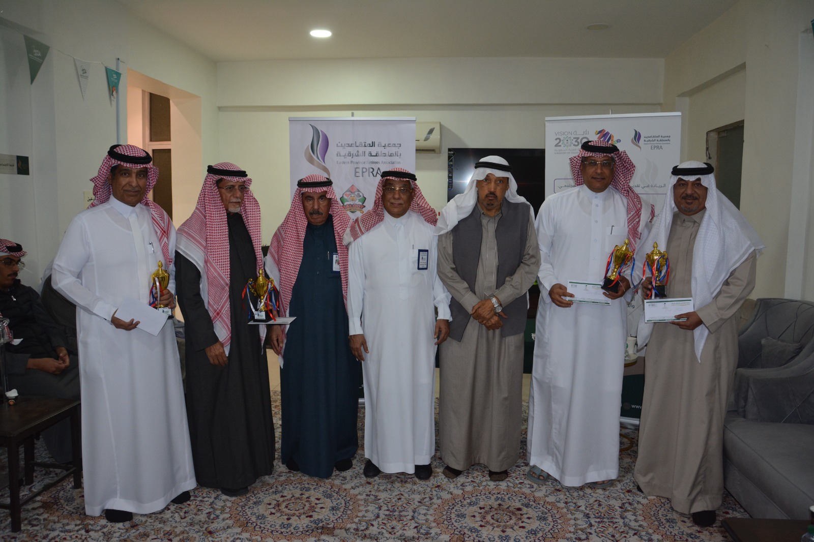 توج رئيس مجلس إدارة جمعية المتقاعدين بالمنطقة الشرقية الأستاذ محمد سليمان القرناس الفريق الفائز في بطولة الجمعية الرمضانية للبلوت، توج المركز الثاني وذلك بعد ختام البطولة التي شهدت تنافس قوي ومثير بين المشاركين وذلك بحضور أعضاء مجلس الإدارة والمشاركين في البطولة وعدد من الأعضاء وذلك في دوانية المتقاعدين بمقر الجمعية.