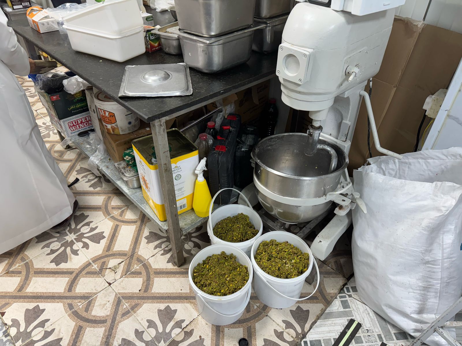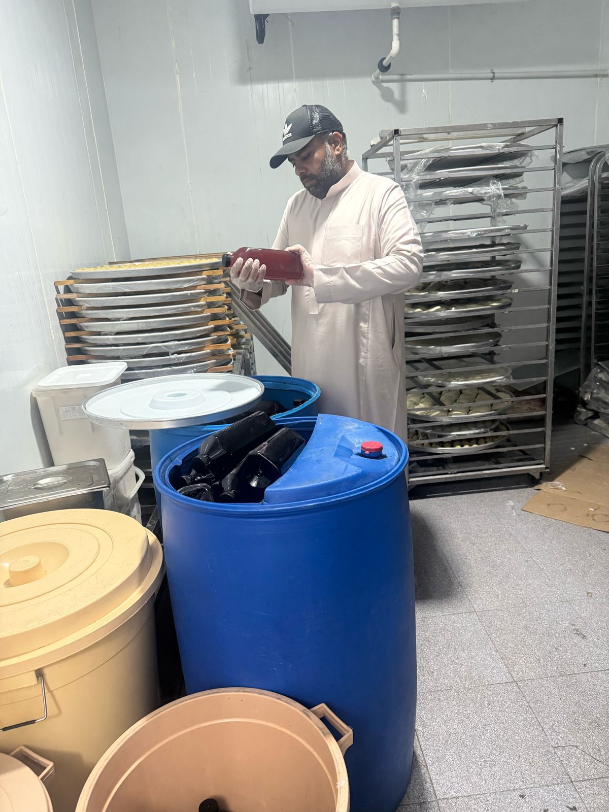 وبيّنت الأمانة أن الموقع تم ضبطه بمشاركة الهيئة العامة للغذاء والدواء، والدفاع المدني، والضبط الميداني، حيث تم رصد نشاط غير نظامي لتجهيز وتعبئة العصائر، وتخزين الجبن والملونات الصناعية منتهية الصلاحية، إلى جانب ضبط مستودع يحتوي على زيت زيتون وسمن غنم تم تخزينها بشكل غير مطابق للاشتراطات.