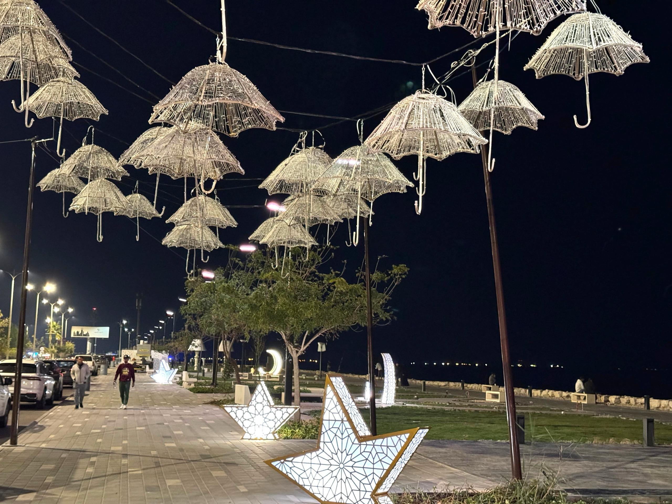 وشملت التجهيزات تركيب أكثر من 3000 بنر على أعمدة الإنارة في الطرق الساحلية والمحورية، إلى جانب 567 سارية في تقاطعات الجسور والأنفاق والواجهات البحرية والحدائق، بالإضافة إلى 200 مجسم يحمل هوية العيد، بعضها مجسمات مضيئة، مما يضفي طابعًا احتفاليًا مميزًا في الأماكن العامة.