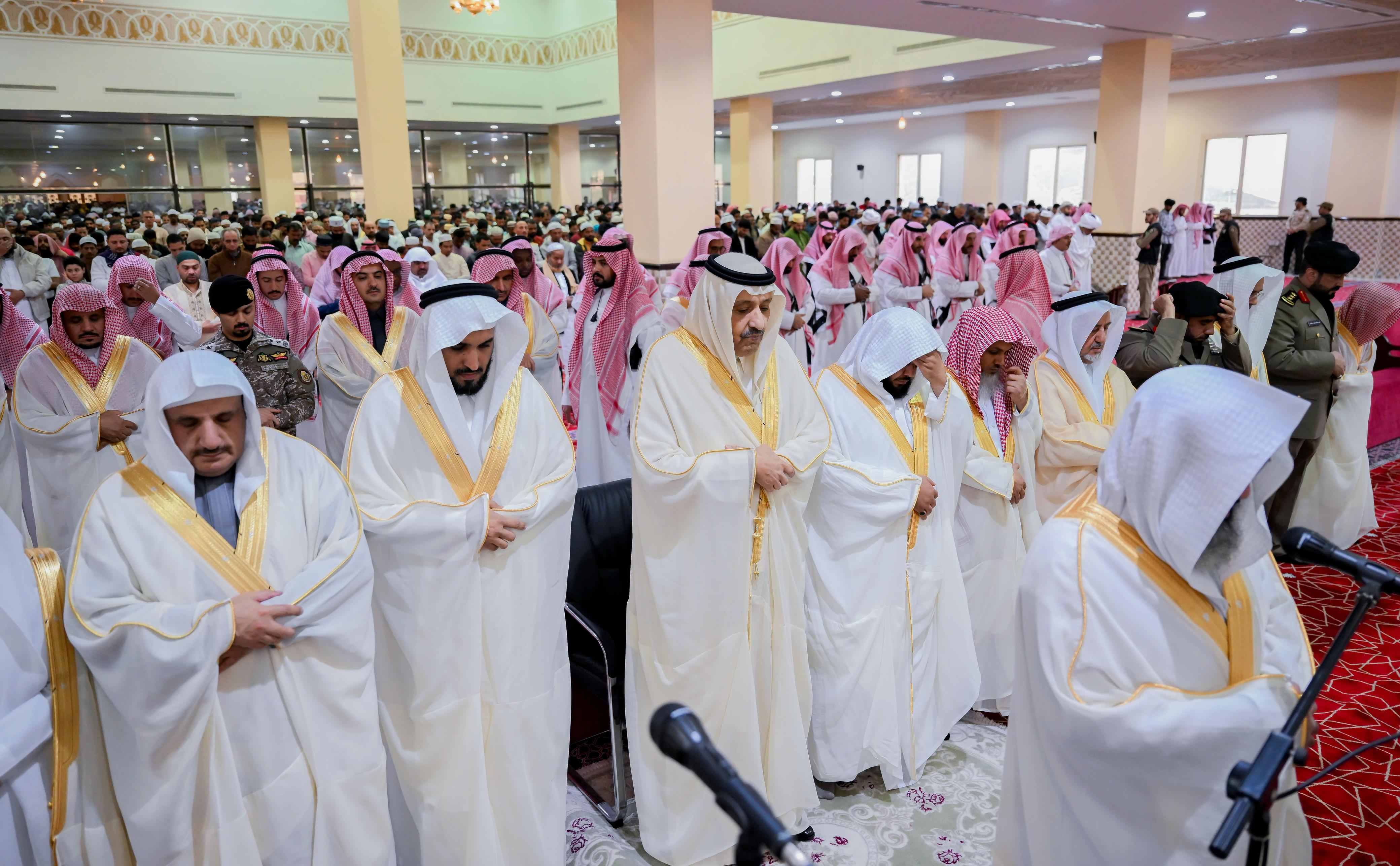 أدى صاحب السمو الملكي الأمير الدكتور حسام بن سعود بن عبد العزيز، أمير منطقة الباحة، اليوم، مع جموع المصلين، صلاة عيد الفطر المبارك في جامع الملك فهد بمدينة الباحة.