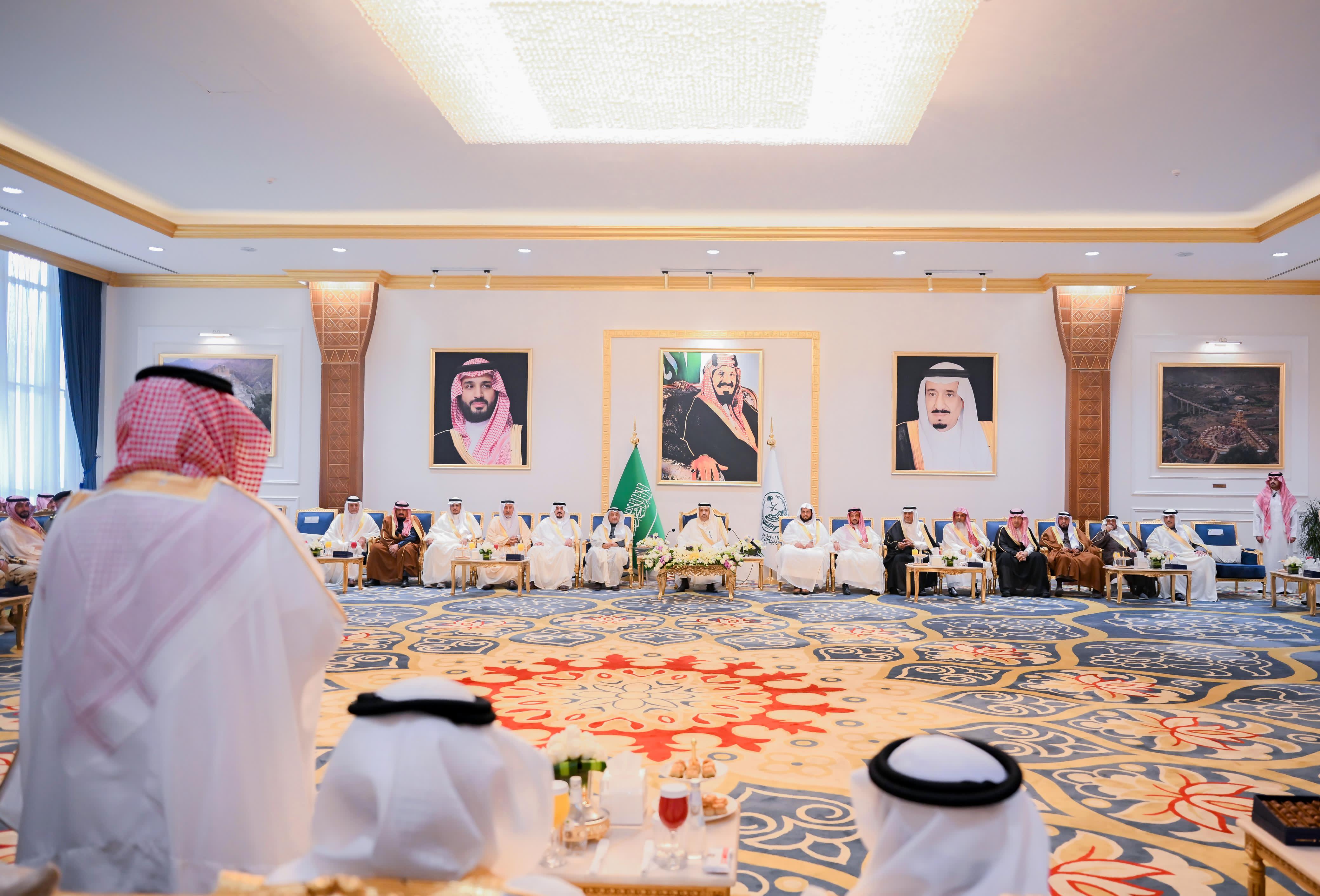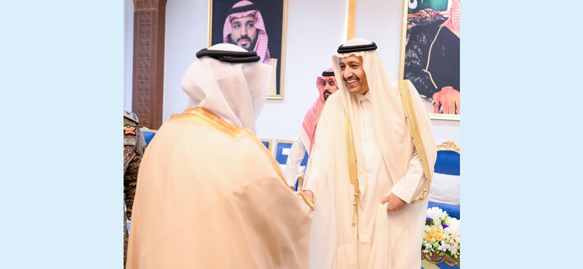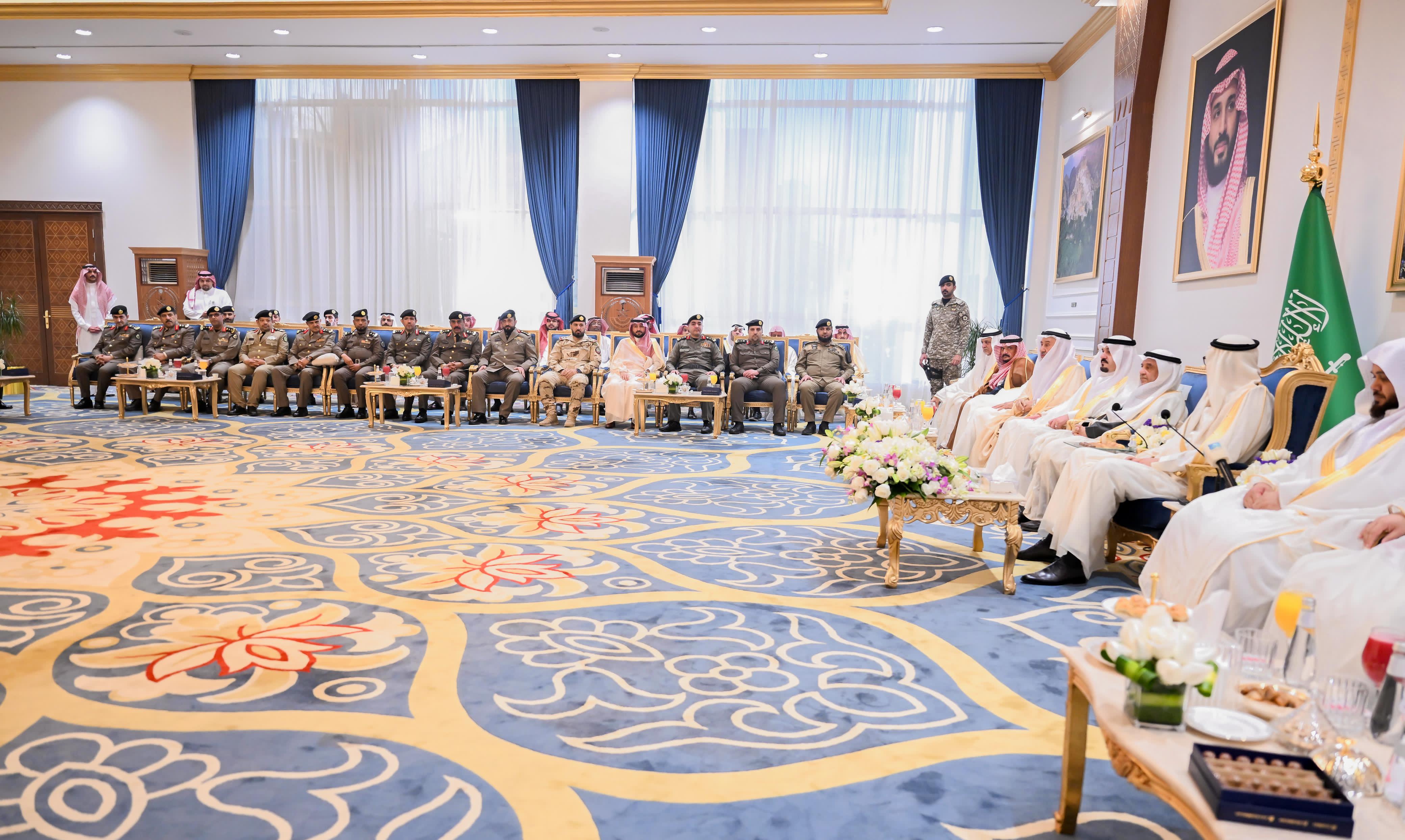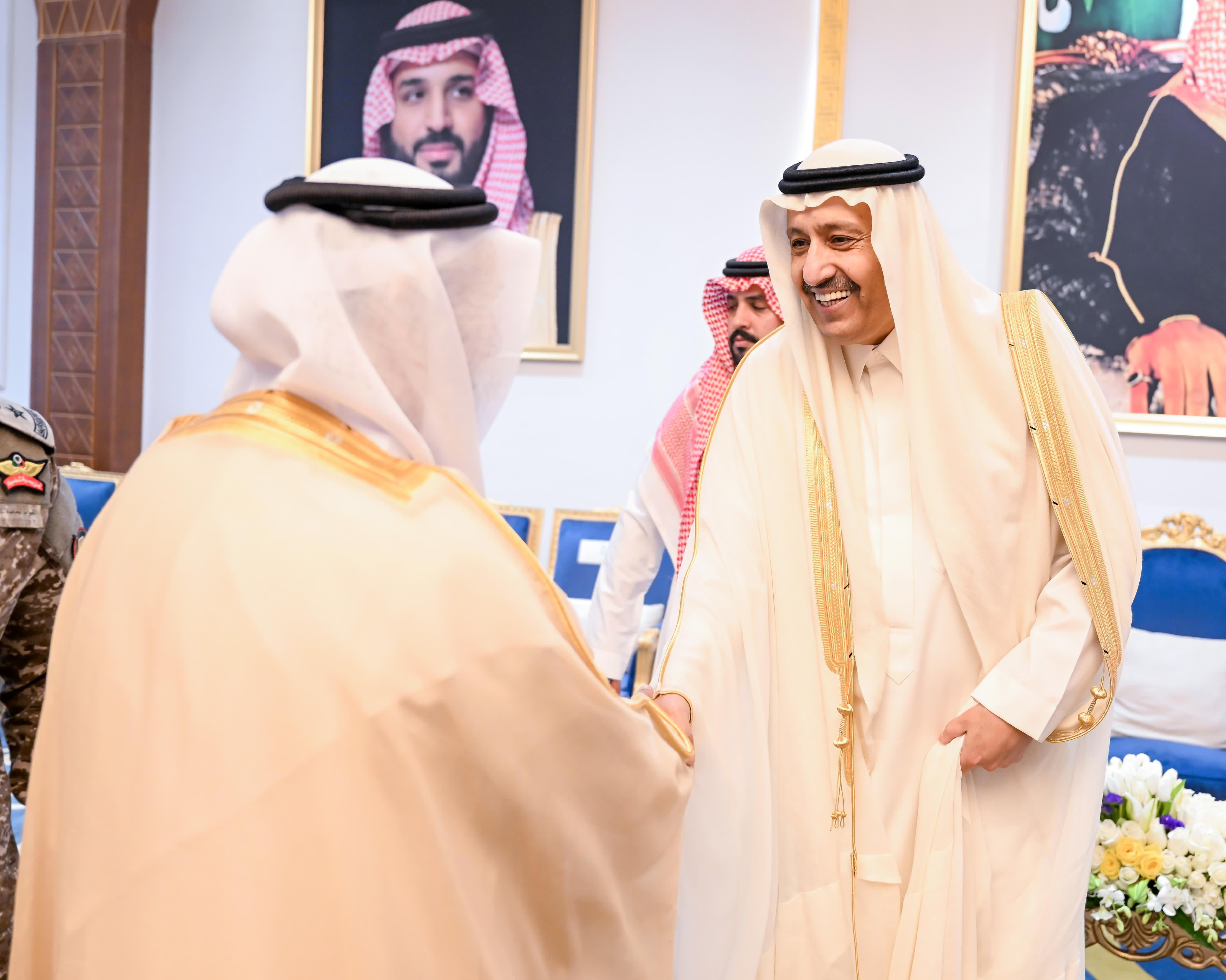 في بداية الاستقبال، رفع سموه، نيابة عن نفسه وعن أهالي المنطقة، التهنئة لخادم الحرمين الشريفين الملك سلمان بن عبدالعزيز آل سعود، ولصاحب السمو الملكي الأمير محمد بن سلمان بن عبدالعزيز آل سعود، ولي العهد، رئيس مجلس الوزراء -حفظهما الله- بمناسبة حلول عيد الفطر المبارك، سائلاً الله العلي القدير أن يعيده على المملكة وهي في عز وشموخ.