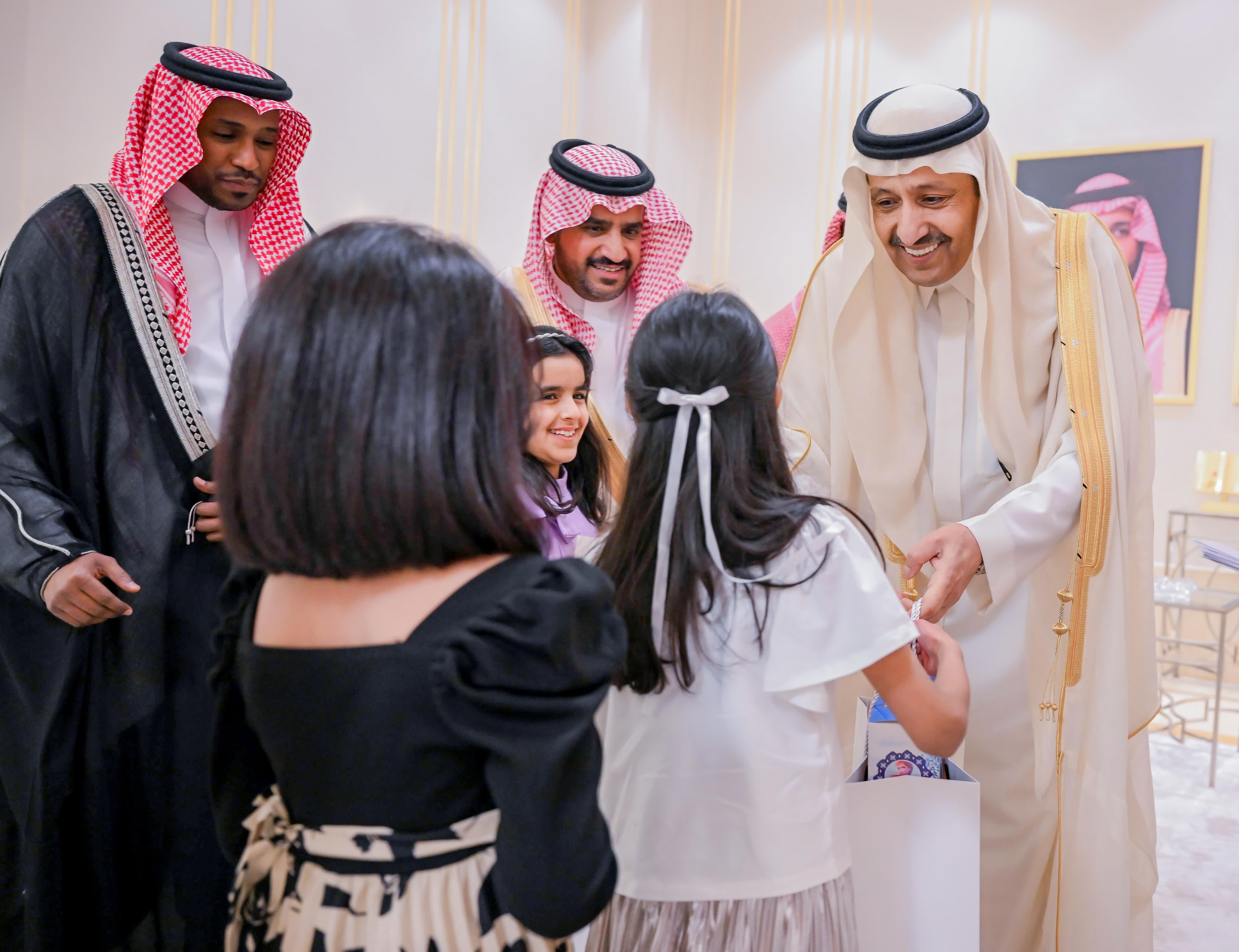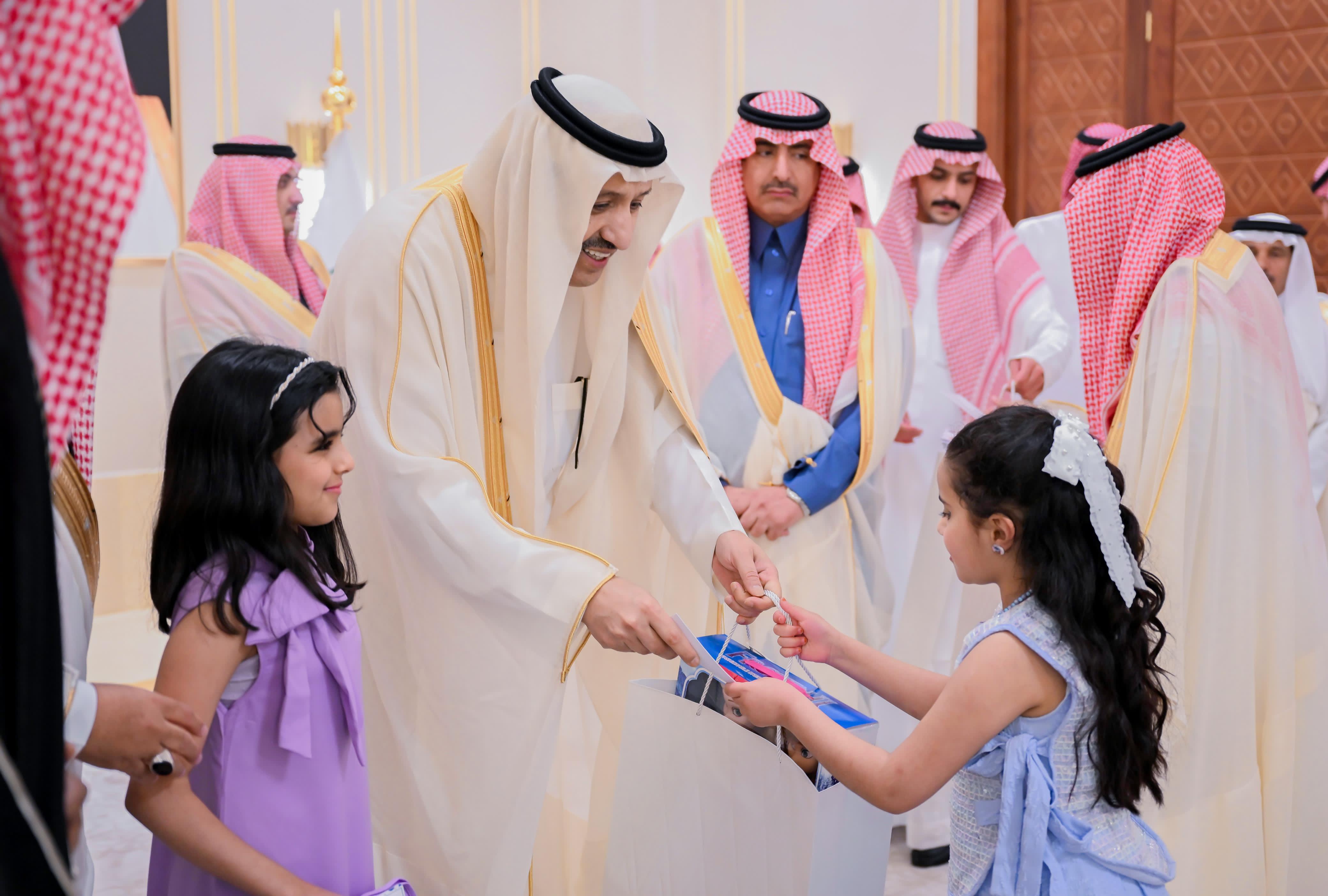 وقدّم سموه خلال الاستقبال العيديات للأيتام، حرصًا منه على مشاركة أبنائه في هذه المناسبة السعيدة، فيما بادله الأيتام التهنئة، معربين عن بالغ فرحتهم وسرورهم.