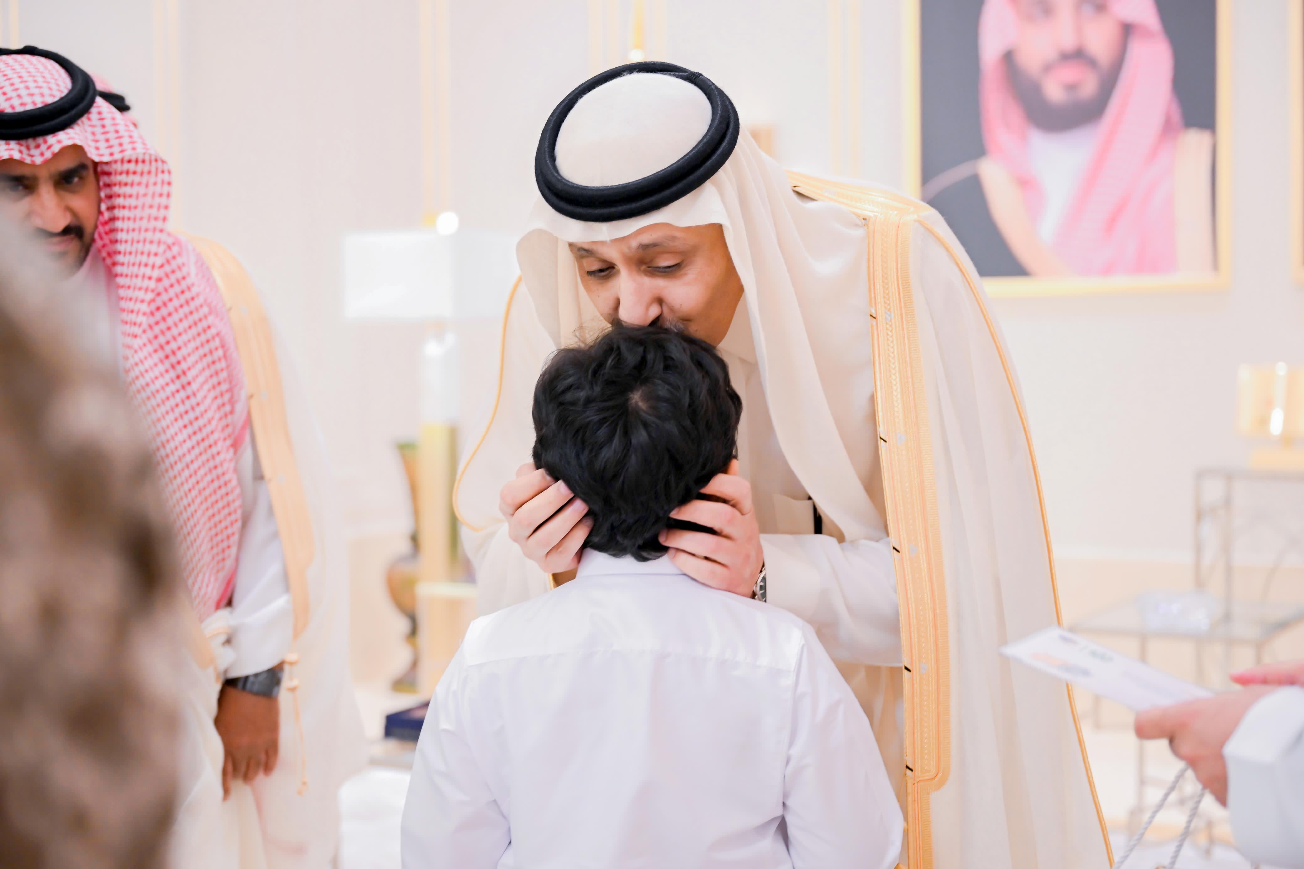 عايد صاحب السمو الملكي الأمير الدكتور حسام بن سعود بن عبدالعزيز، أمير منطقة الباحة الرئيس الفخري لجمعية أكناف لرعاية الأيتام بالباحة، اليوم، أيتام الجمعية، وذلك خلال استقباله لهم في ديوان الإمارة، سائلاً الله تعالى أن يعيد هذه المناسبة على الجميع بالصحة والعافية والسلامة.