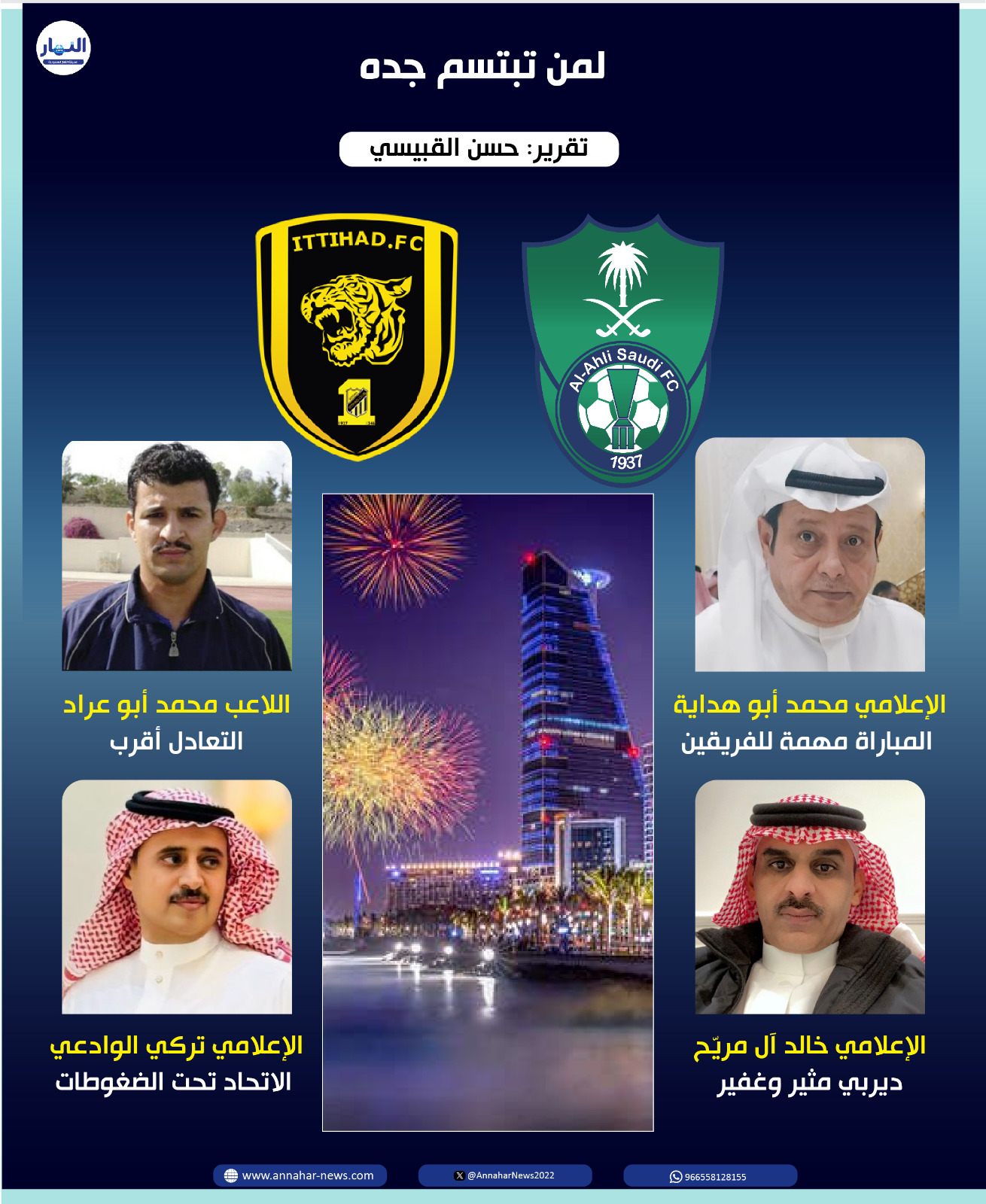وأضاف، كالعادة سيشكل حضور جماهير الفريقين الغفيره، جمالية واسعة في منافسة كروية ثقيلة، أعتاد مشاهدتها الملايين في داخل ملعب اللقاء و خلف الشاشات.