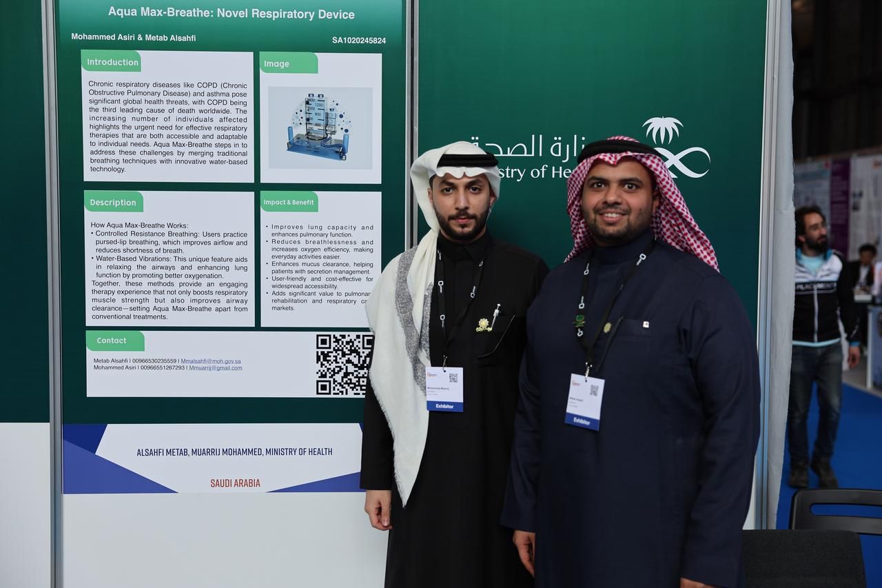 وشهدت المشاركة إنجازًا وطنيًا مميزًا بحصول المخترعين متعب الصحفي ومحمد عسيري، من منسوبي التجمع، على الميدالية الفضية عن ابتكارهما الطبي "Aqua Max-Breathe".