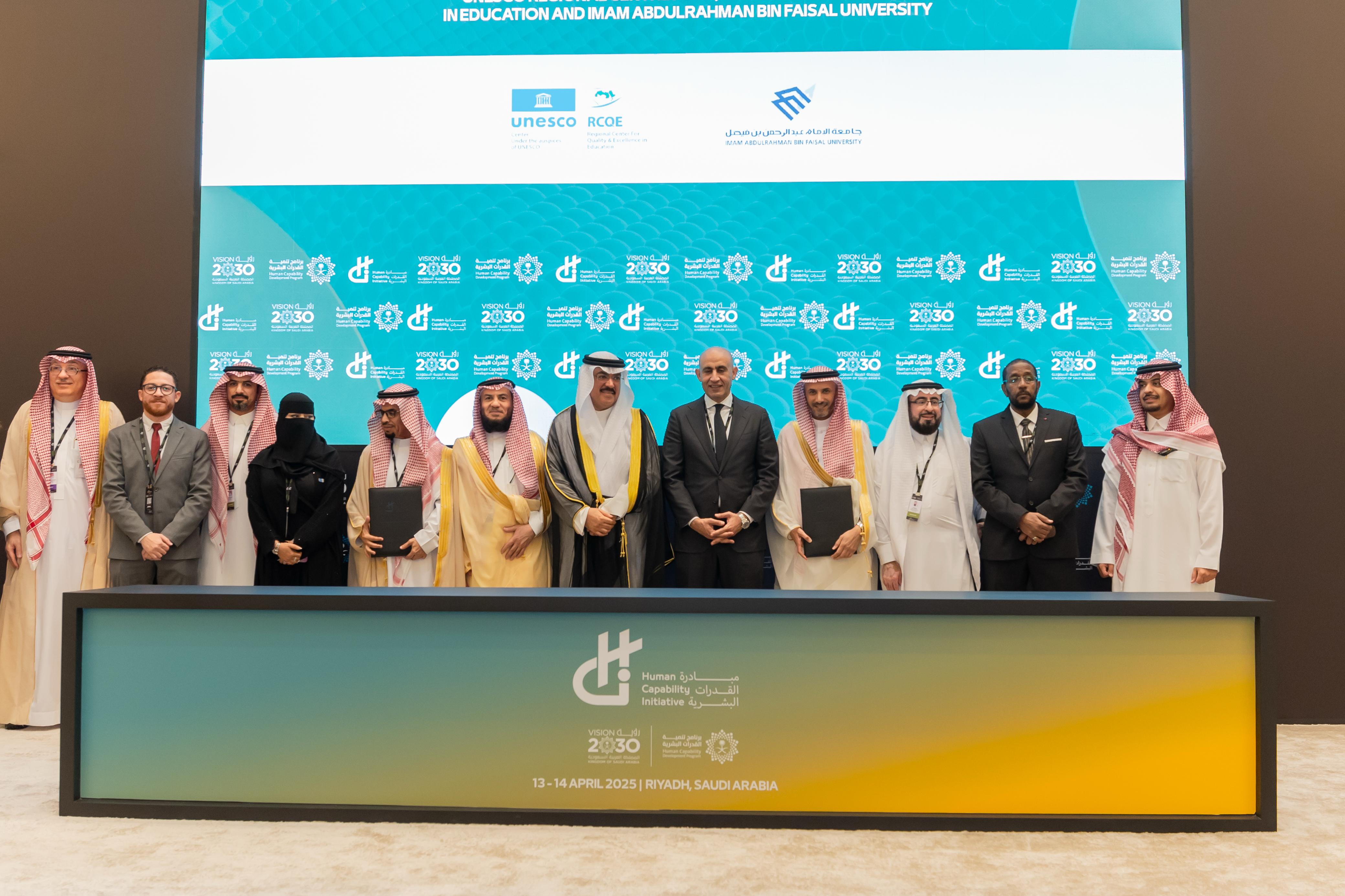 وقّعت جامعة الإمام عبد الرحمن بن فيصل، ممثّلة بسعادة رئيسها المكلّف الأستاذ الدكتور فهد بن أحمد الحربي، مذكرة تفاهم مع المركز الإقليمي للجودة والتميّز في التعليم، التابع لمنظمة الأمم المتحدة للتربية والعلم والثقافة (اليونسكو)، وذلك على هامش أعمال المؤتمر الدولي للتعليم المنعقد في الرياض.