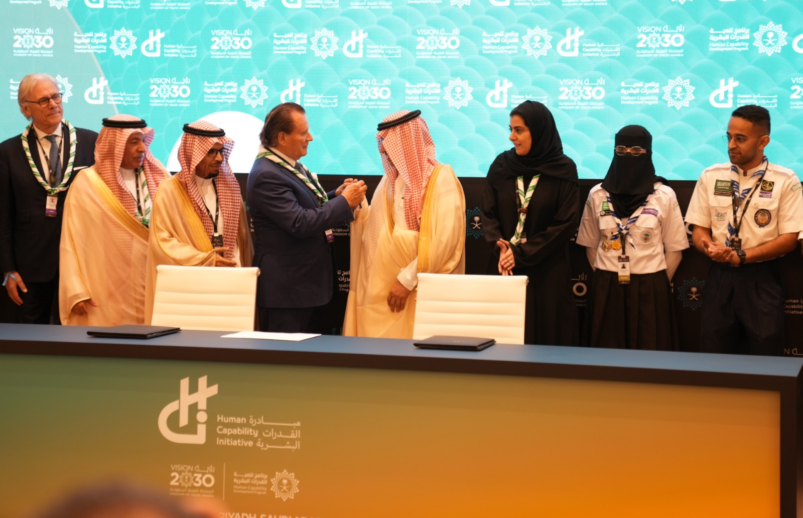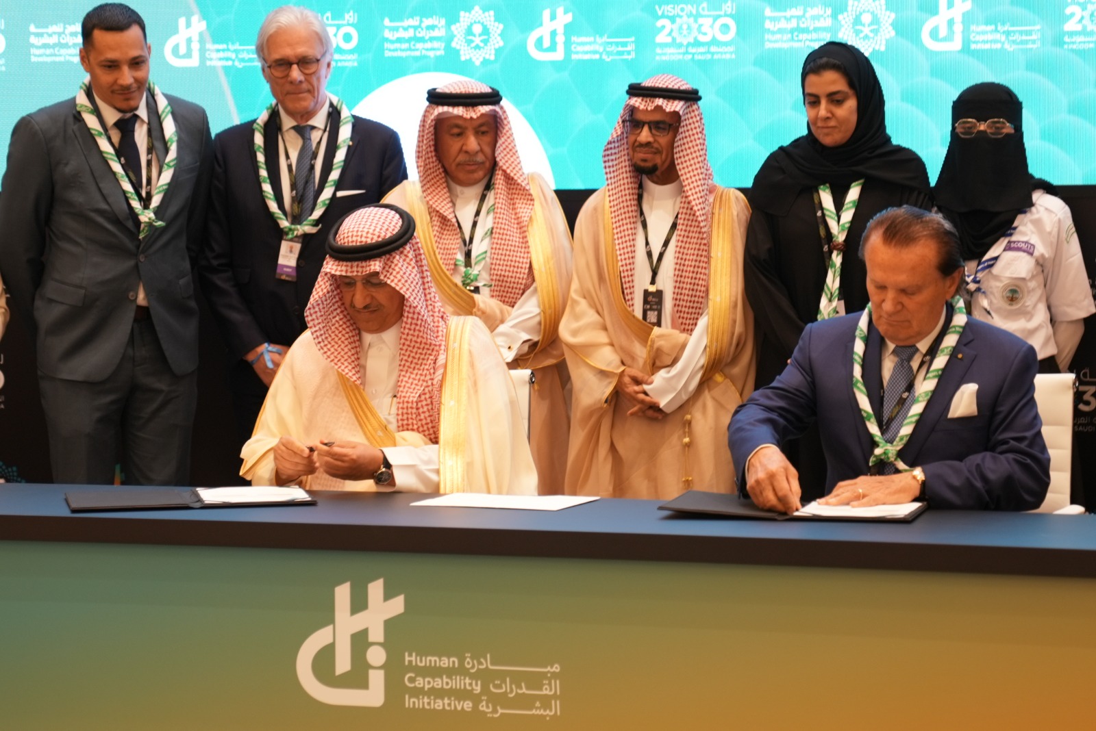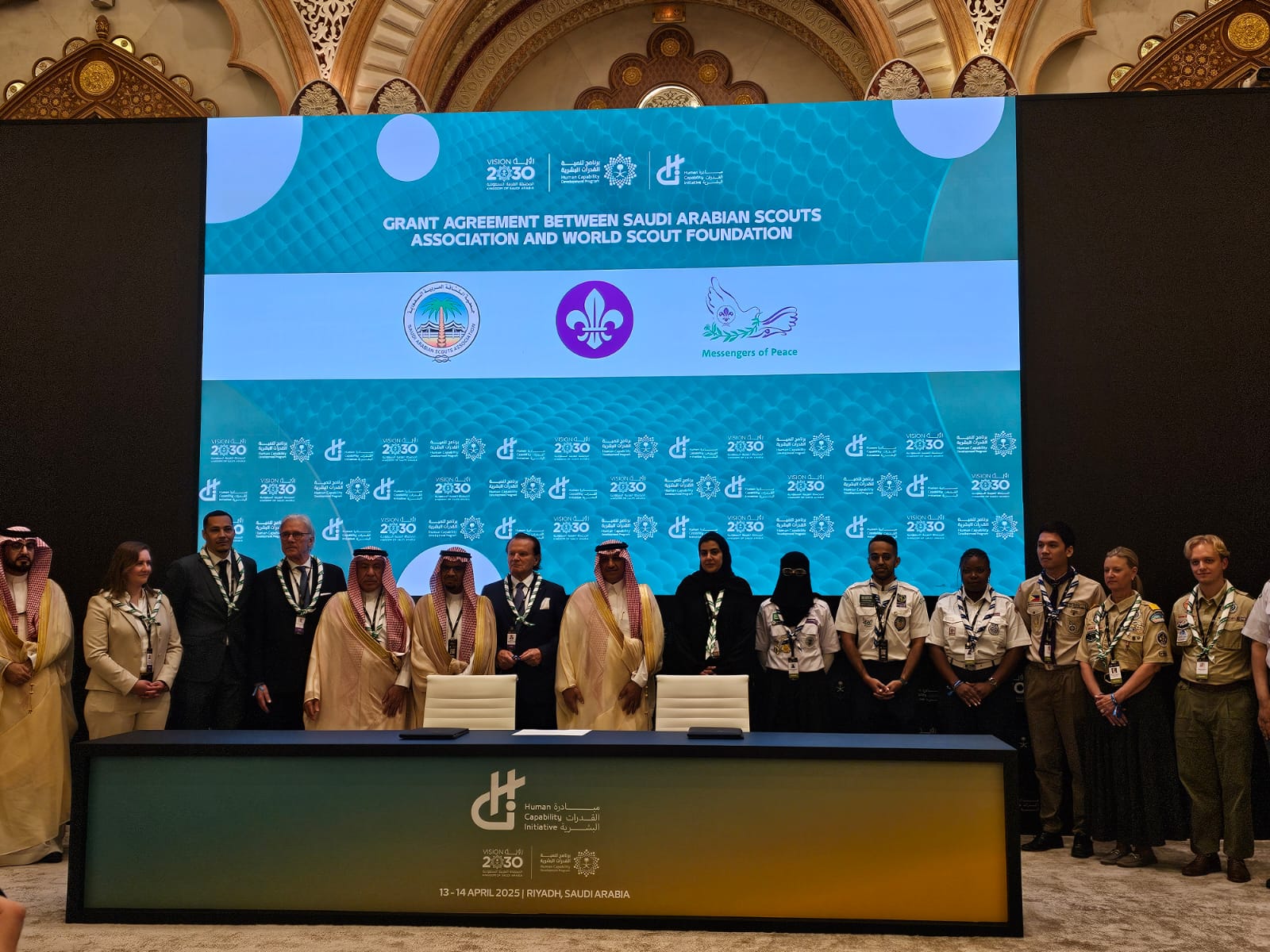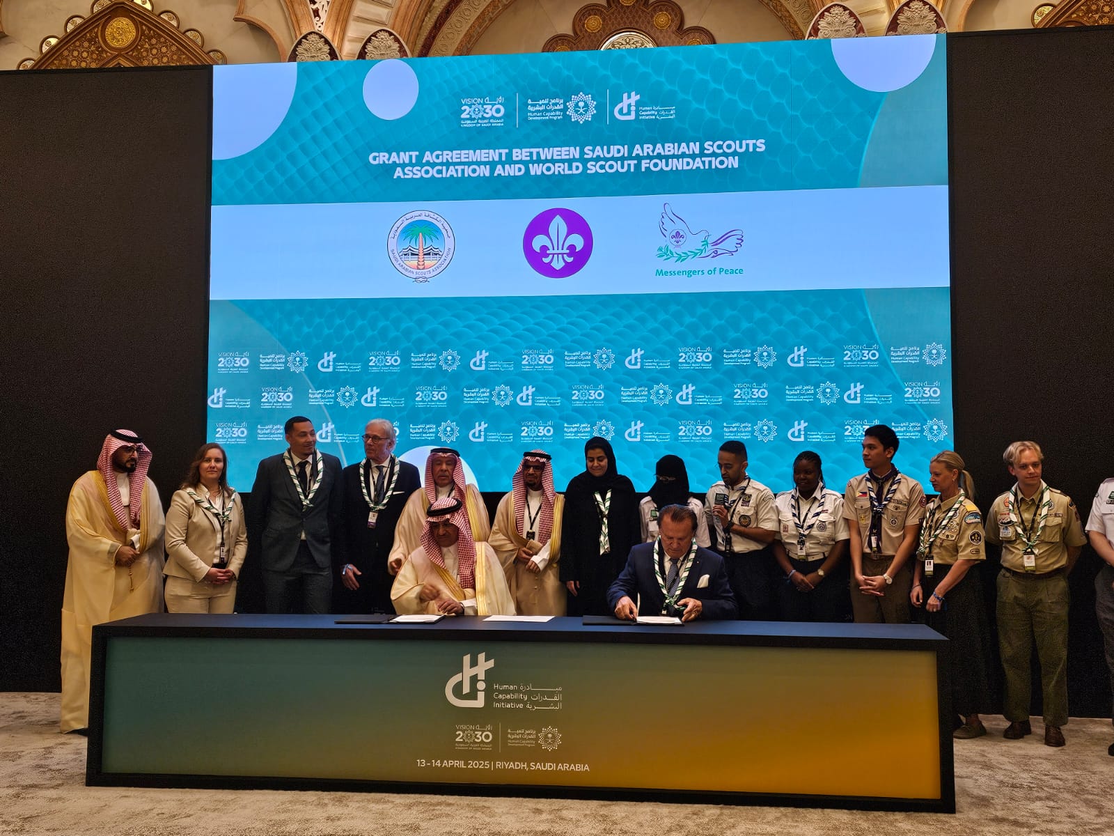 شهد مؤتمر مبادرة القدرات البشرية المقام حالياً في دورته الثانية بالرياض، توقيع اتفاقية تجديد تمويل مبادرة "رسل السلام" العالمية على مدى العقد القادم، بقيمة 50 مليون دولار أمريكي من حكومة المملكة العربية السعودية، بهدف إلهام وتشجيع أكثر من 100 مليون كشاف للعمل كرسل سلام في 176 دولة.