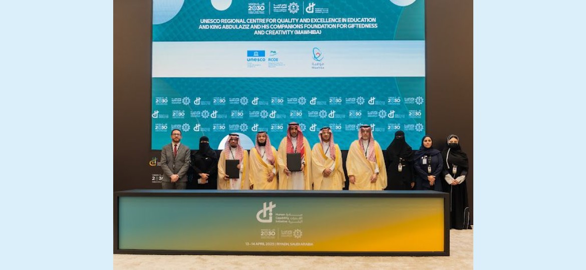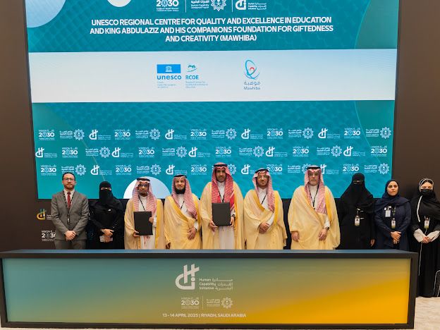 في إطار الجهود المتواصلة لتعزيز جودة التعليم ورعاية المواهب الشابة، وقّع مركز اليونسكو الإقليمي للجودة والتميز في التعليم ومؤسسة الملك عبد العزيز ورجاله للموهبة والإبداع "موهبة" اتفاقية تعاون ضمن فعاليات مؤتمر مبادرة القدرات البشرية (Human Capability Initiative - HCI)، تهدف الاتفاقية إلى بناء شراكة استراتيجية تخدم الموهوبين وتساهم في تطوير التميز التعليمي على المستويين الوطني والإقليمي.