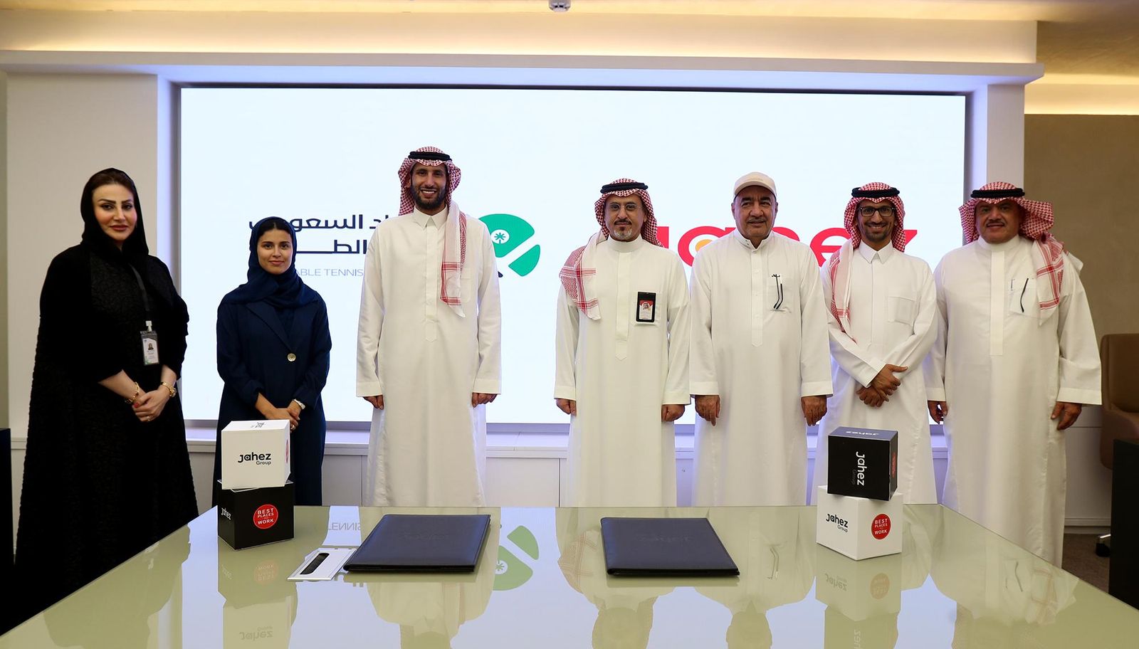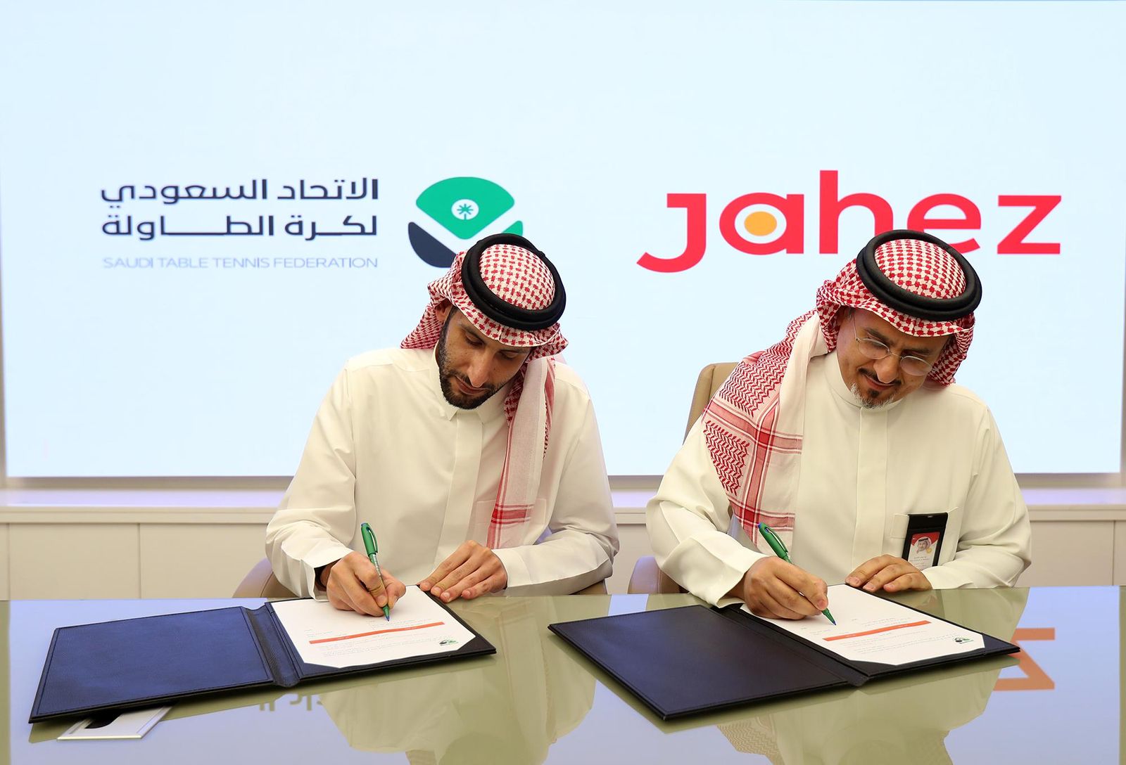 وجاء توقيع عقد الشراكة بين صاحب السمو الملكي الأمير محمد بن عبدالرحمن بن ناصر آل سعود، رئيس الاتحاد السعودي لكرة الطاولة، وسعادة المهندس غصاب بن منديل ، الرئيس التنفيذي لشركة جاهز، حيث تم بموجبها اعتماد “جاهز” الراعي البلاتيني الحصري للدوري السعودي للمحترفين لكرة الطاولة.