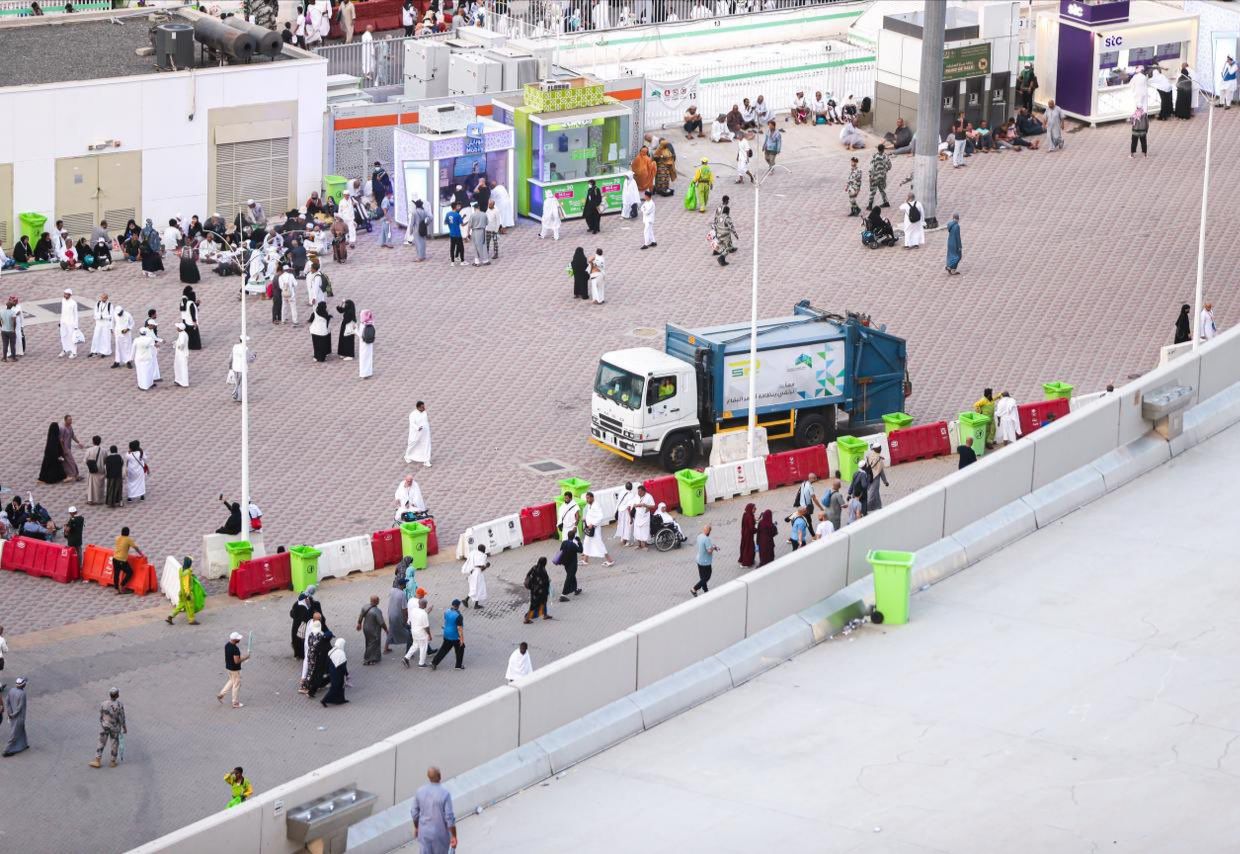 وأضافت بأنها قد وفرت منظومة تخزين مؤقتة للنفايات عبارة عن مخازن أرضية وصناديق ضاغطة، حيث تم توفير 111 مخزناً أرضياً و1071 صندوقاً ضاغطاً موزعة على المشاعر لاستخدامها وفق الخطة التشغيلية.