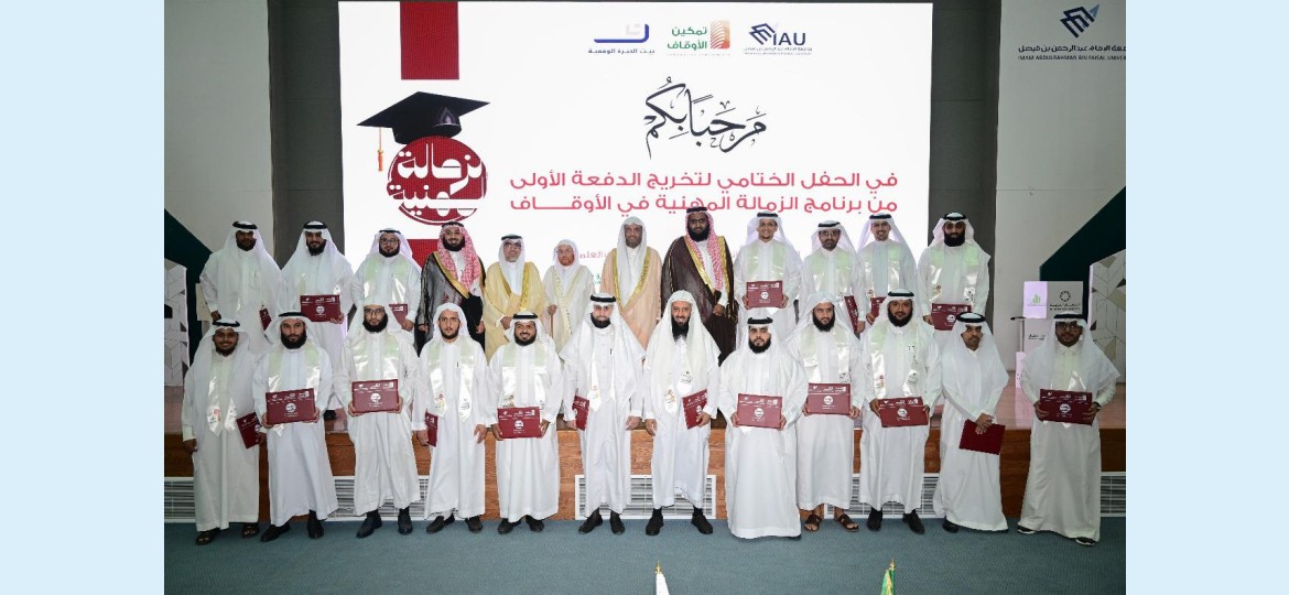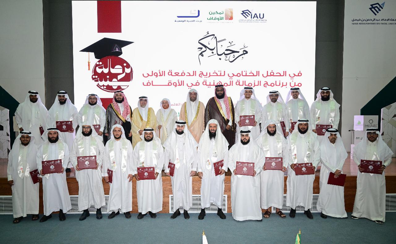 احتفلت جمعية تمكين الأوقاف، بالشراكة مع جامعة الإمام عبدالرحمن بن فيصل ممثلة ببيت الخبرة الوقفية، مساء أمس الأحد، بتخريج الدفعة الأولى من برنامج الزمالة المهنية في الأوقاف، وذلك في مقر الجامعة بمدينة الدمام، بمبنى العمادات المساندة، بحضور عدد من أصحاب المعالي والفضيلة والقيادات والمهتمين بالقطاع الوقفي، وبدعم من مؤسسة الضويان الخيرية، ومؤسسة عبدالرحمن بن صالح الراجحي وعائلته الخيرية، ومؤسسة حمد الحصيني وعائلته الخيرية، وجمعية منفعة كشريك علمي.